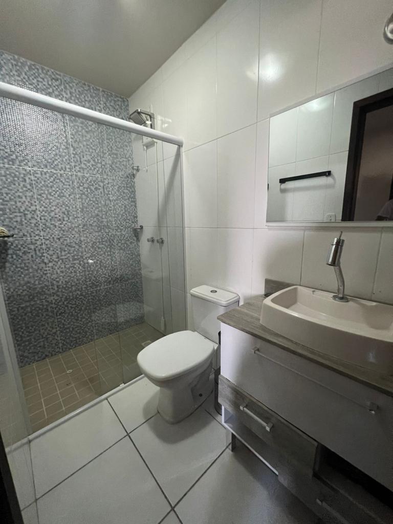 Sobrado de três dormitórios sendo uma suíte, cozinha, sala de estar e jantar integrados, área de serviço, churrasqueira, banheiro social e duas vagas de garagem.