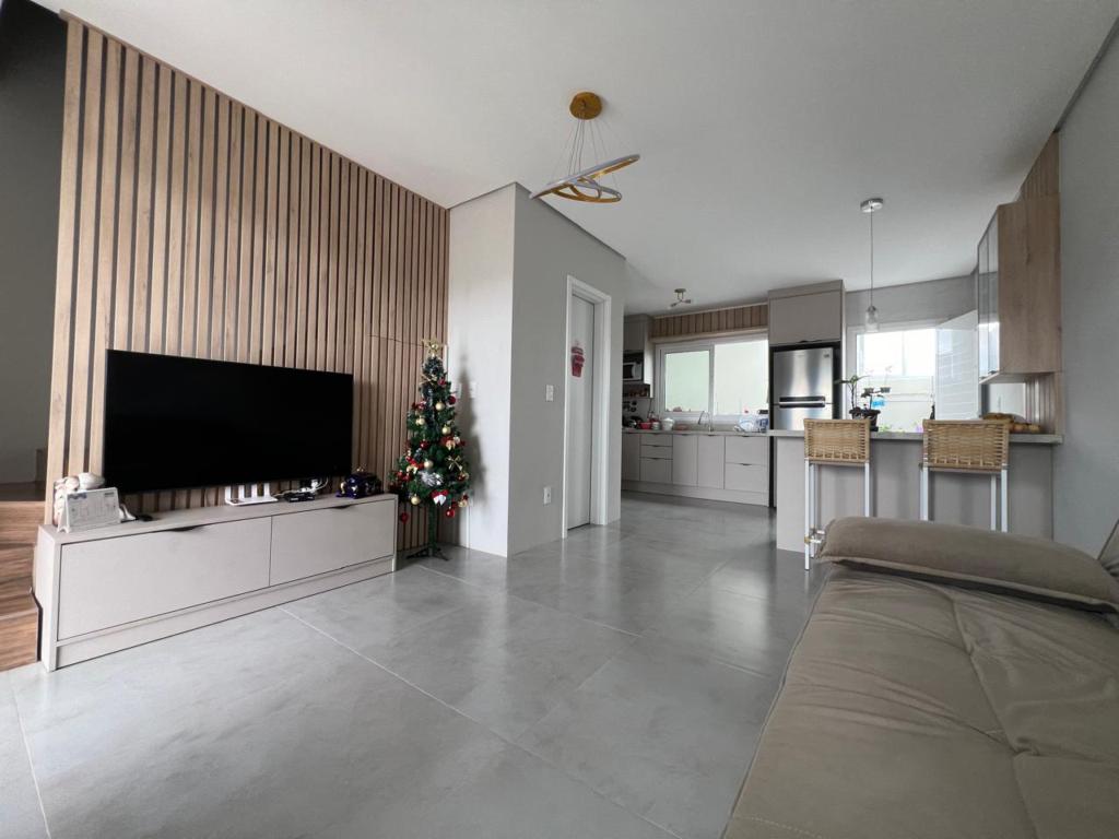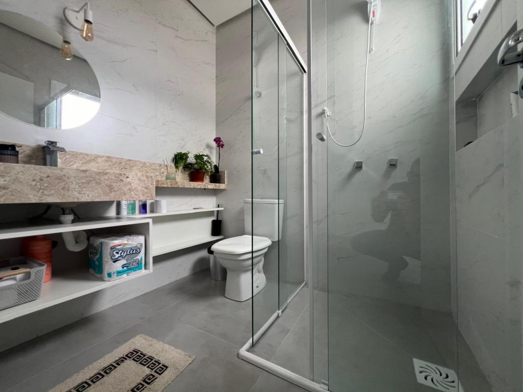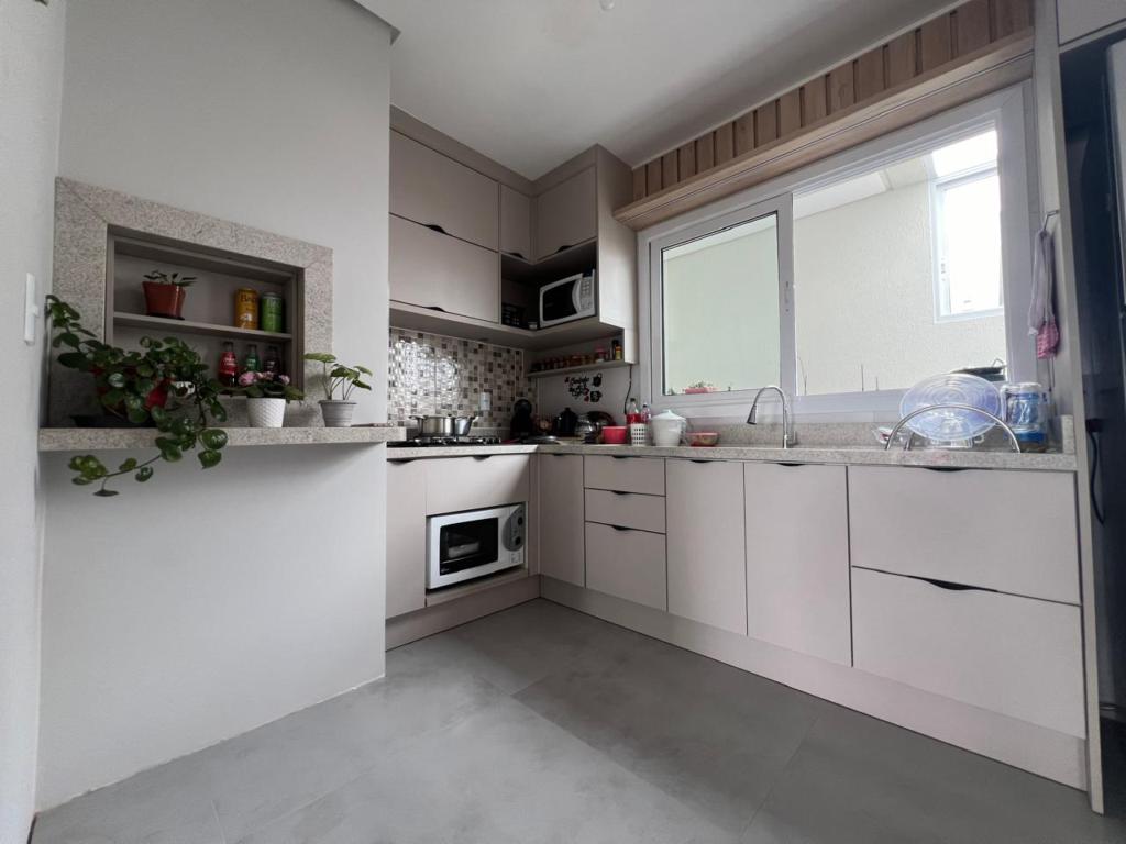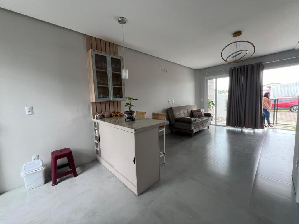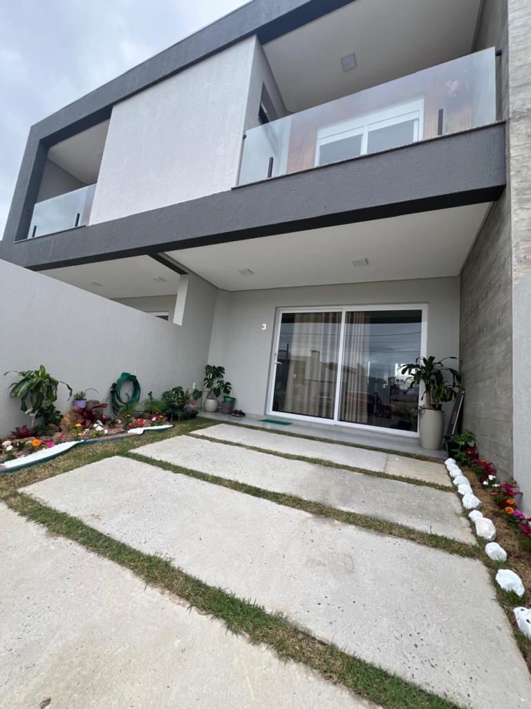Lindo sobrado de duas suítes, amplo living, cozinha, churrasqueira, área de serviço, pátio na frente e fundos e vaga de garagem.