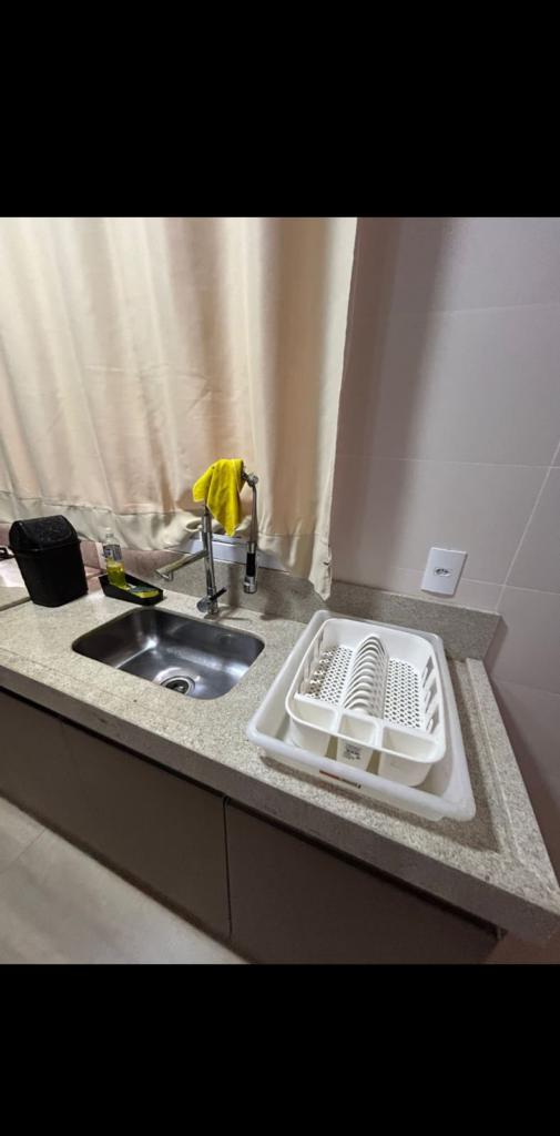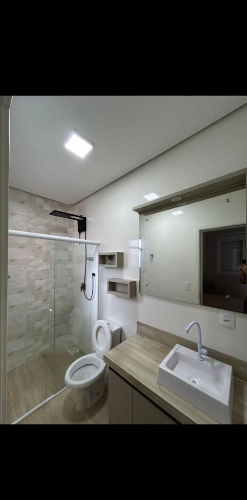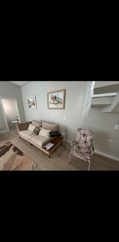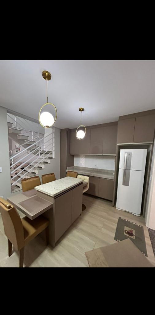Excelente triplex mobiliado com dois dormitórios, cozinha, sala de estar e jantar, lavabo, área de serviço, sacada, terraço com espaço gourmet e vaga de garagem.