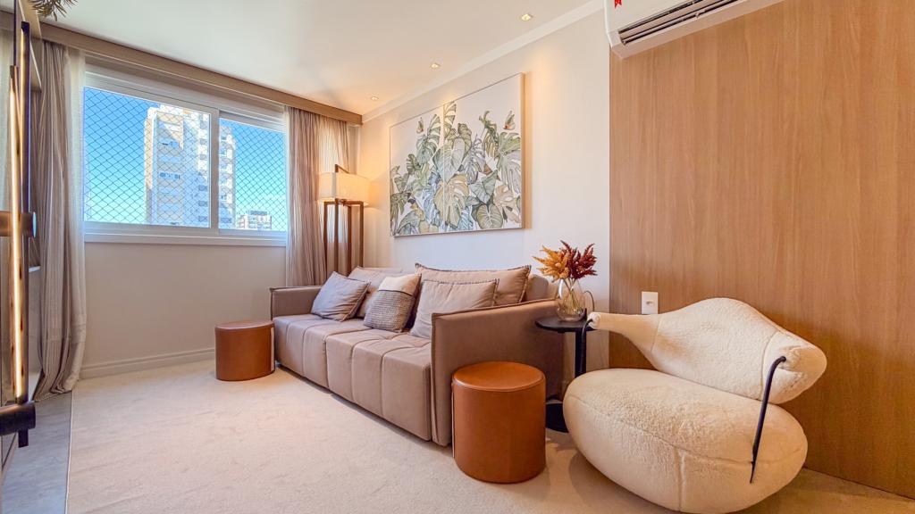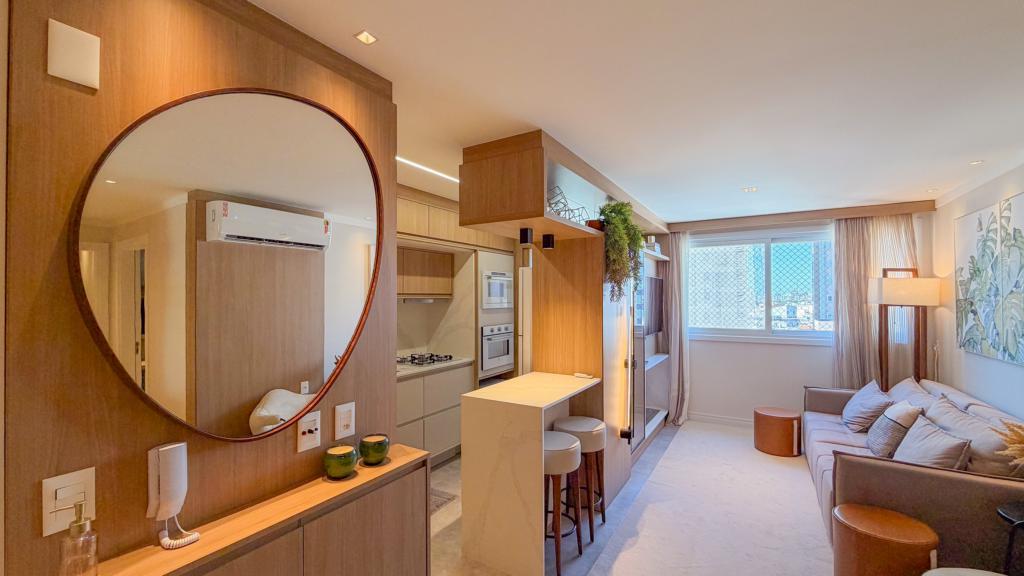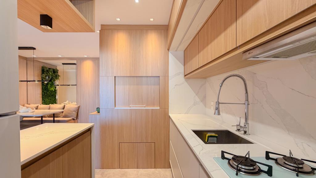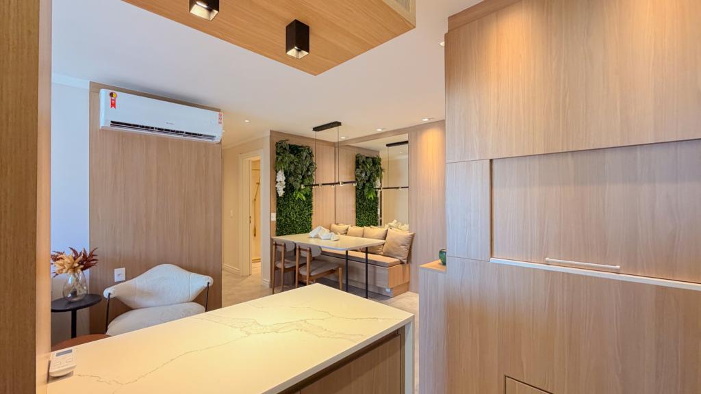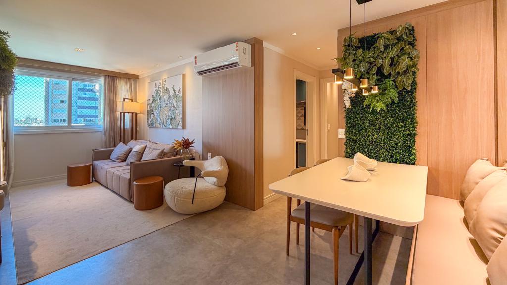 Belíssimo apartamento com dois dormitórios um sendo suíte, amplo living gourmet integrado, área de serviço e vaga de garagem para dois veículos.