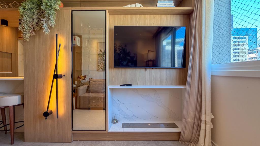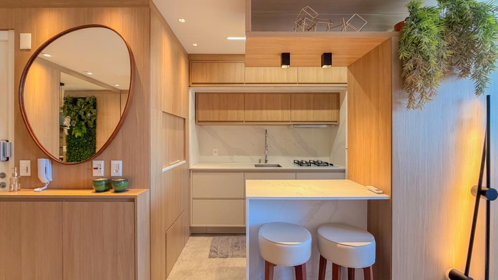 Apartamento mobiliado, decorado e equipado.
