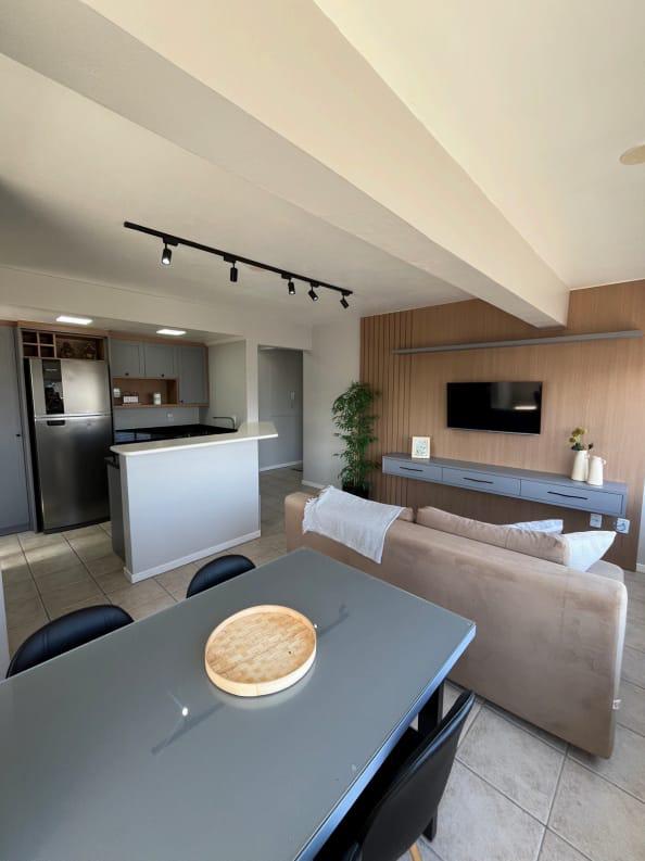 Excelente apartamento mobiliado de dois dormitórios, sendo uma suíte, cozinha, sala de estar e jantar e churrasqueira.