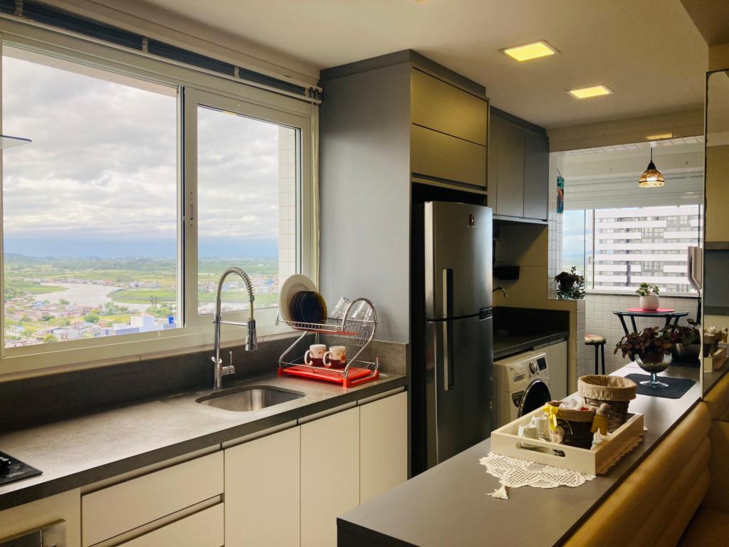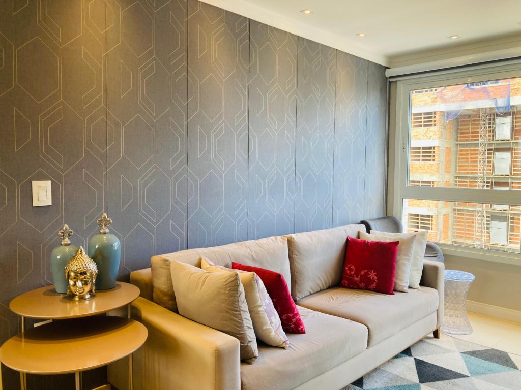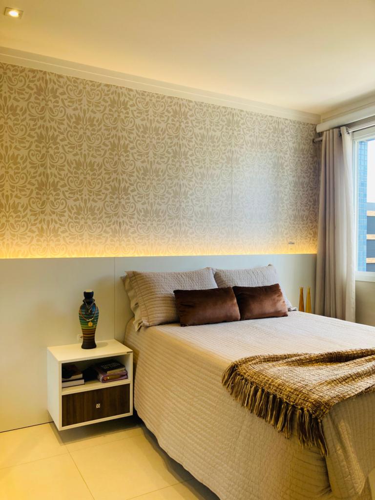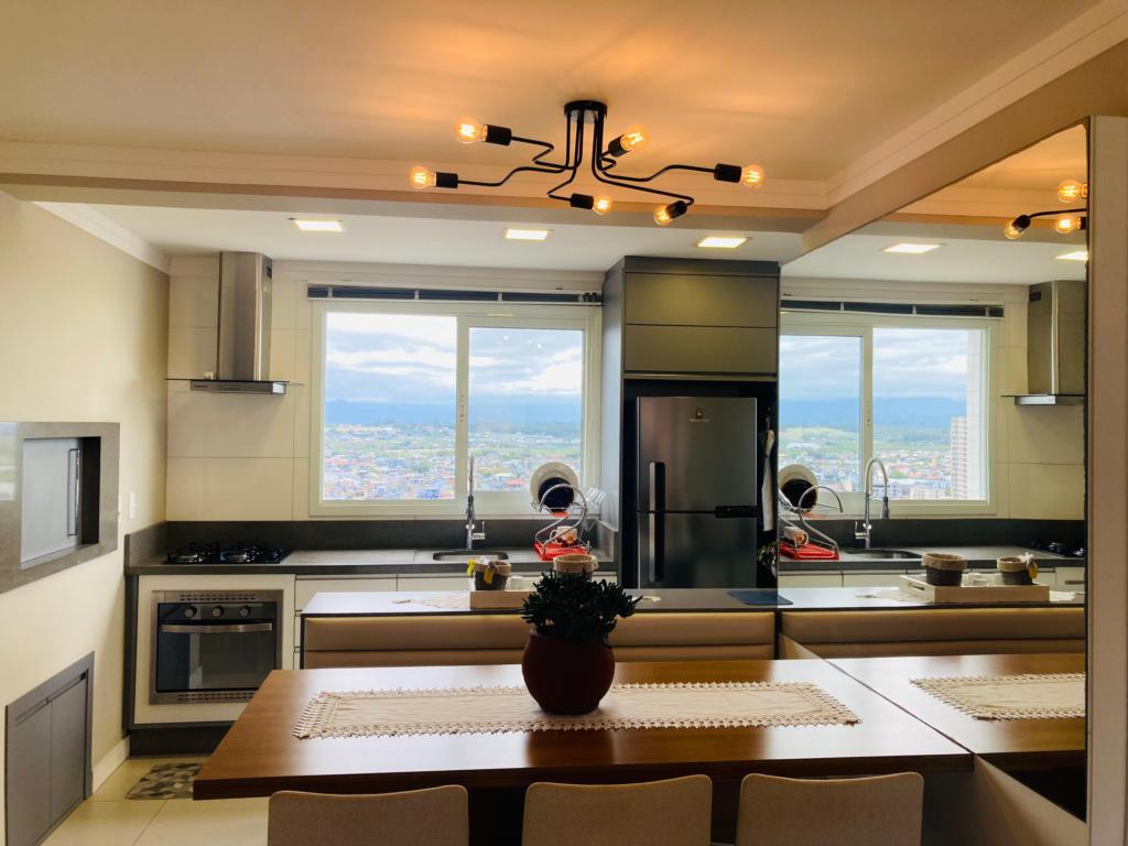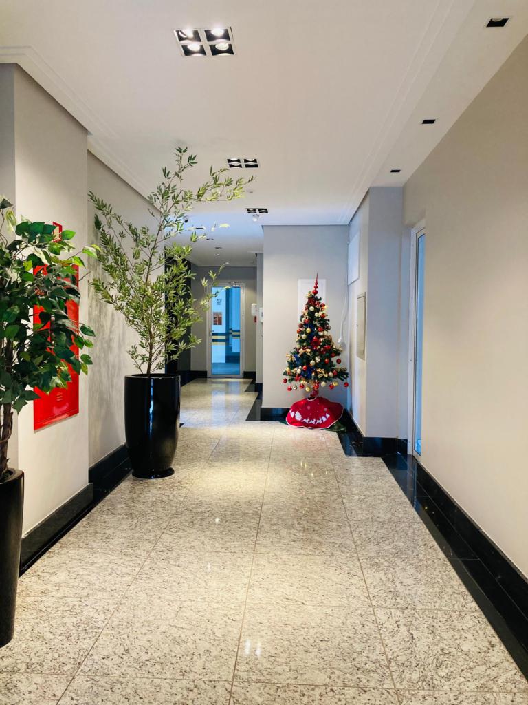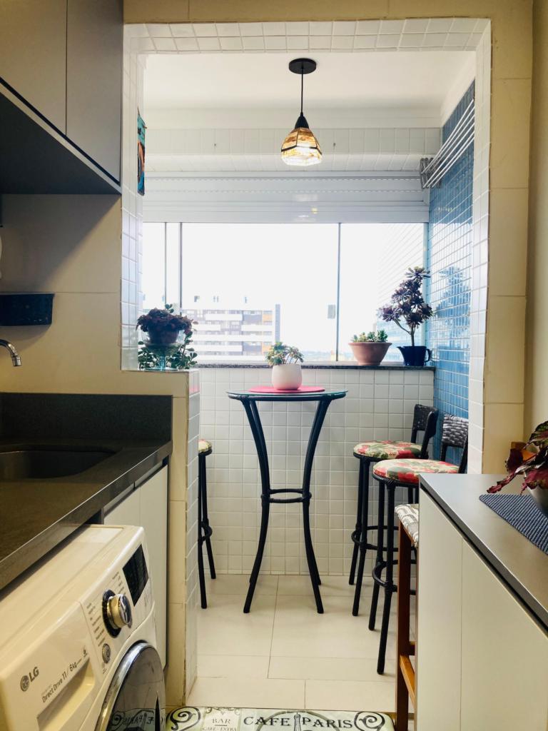 Excelente apartamento mobiliado com dois dormitórios, sendo uma suíte, lavabo, banheiro social, amplo living integrado com sala de estar/jantar/cozinha, área de serviço, churrasqueira e duas vaga na garagem.