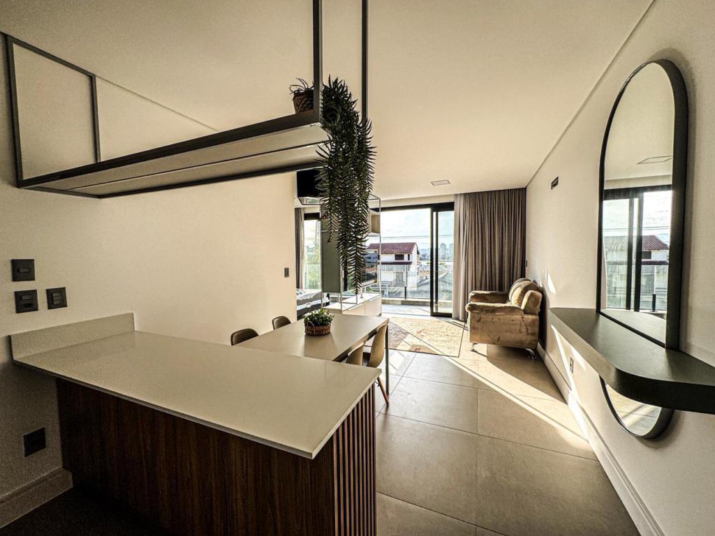 Ótimo apartamento mobiliado e decorado, de um dormitório, living, cozinha, área de serviço, sacada aberta, e uma vaga de garagem.