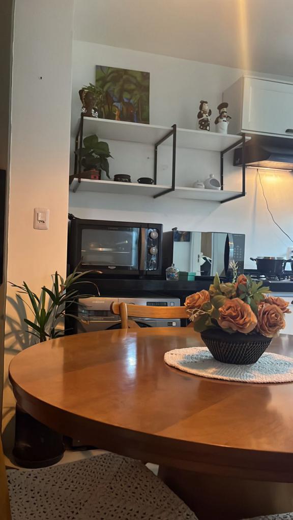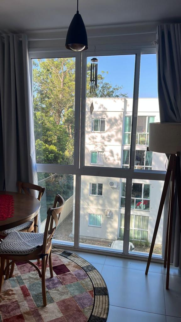 Excelente apartamento semi mobiliado (fica os móveis fixos e ar condicionado), com dois dormitórios, sala de estar/jantar, cozinha, churrasqueira e vaga de garagem.