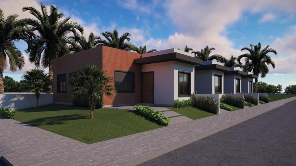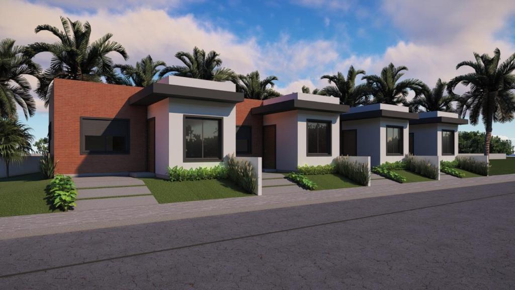 Ótimo imóvel de dois dormitórios, sala, cozinha, banheiro social, varanda e garagem para um carro.