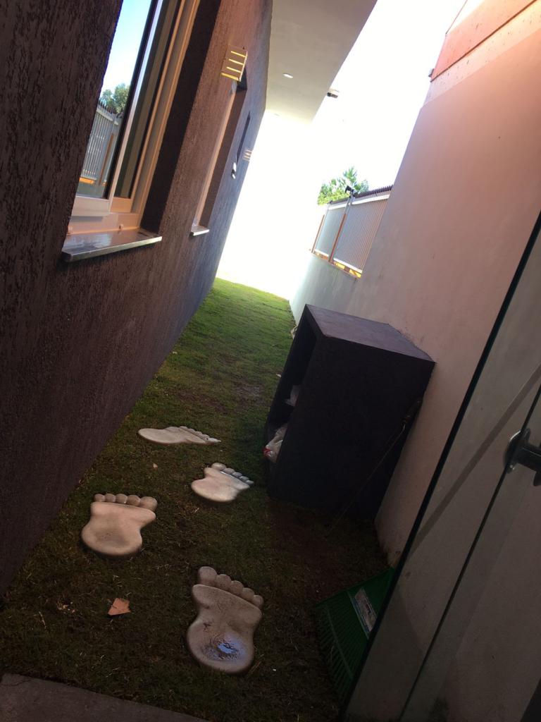Linda casa de três dormitórios, sendo uma suíte, cozinha loft integrada com sala de estar e janta, área de serviço e garagem, com fachada e jardim decorados e com espaço atrás para área de lazer.