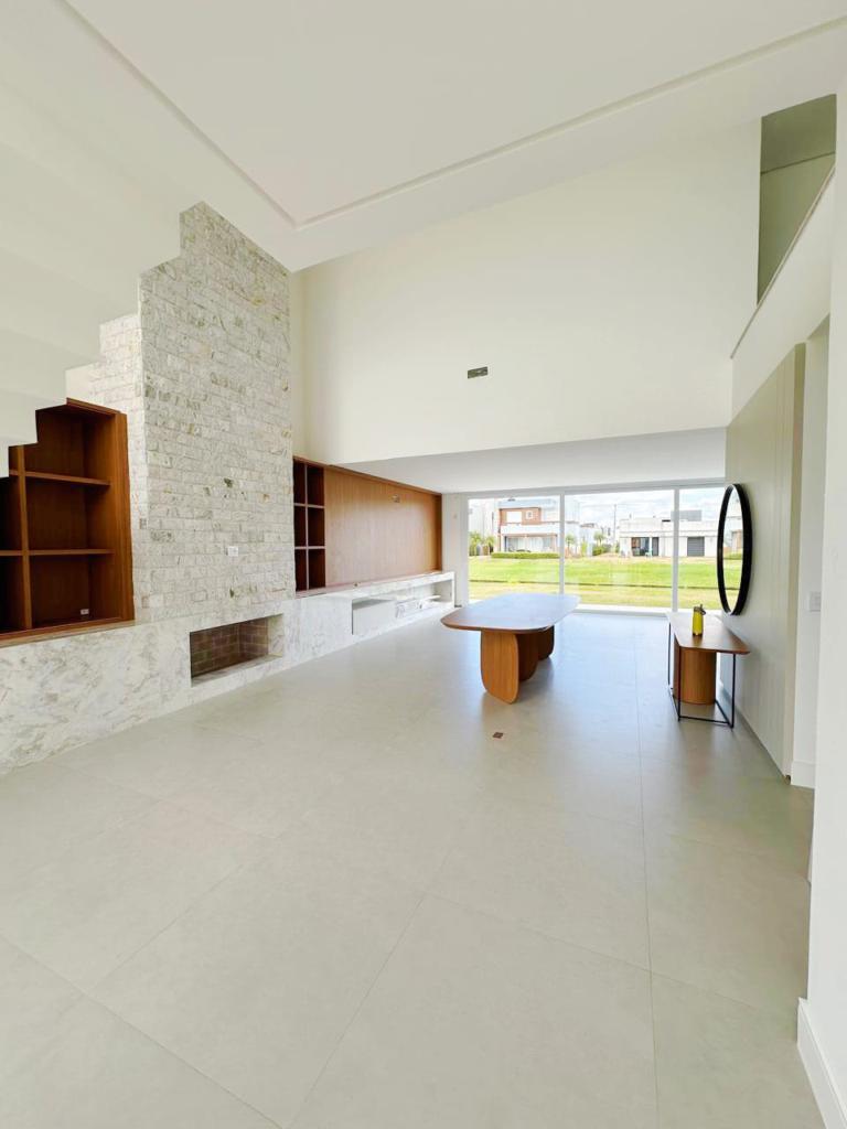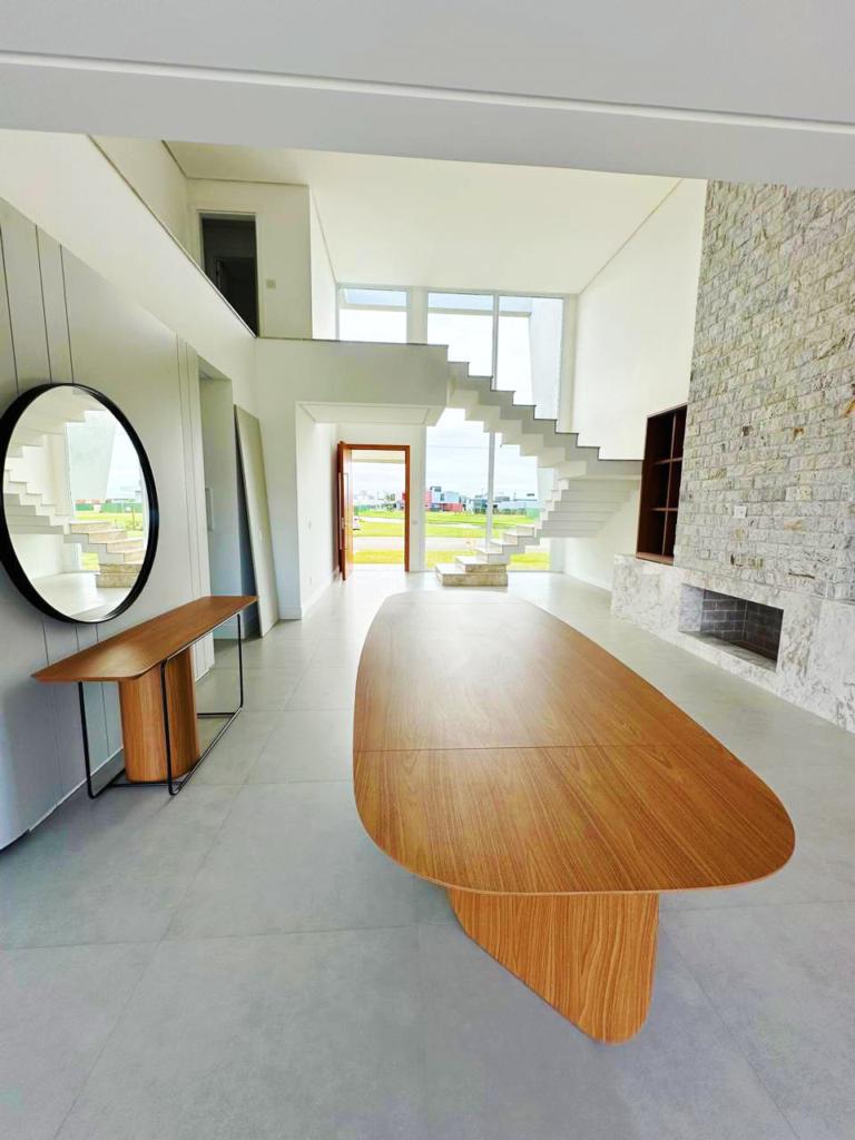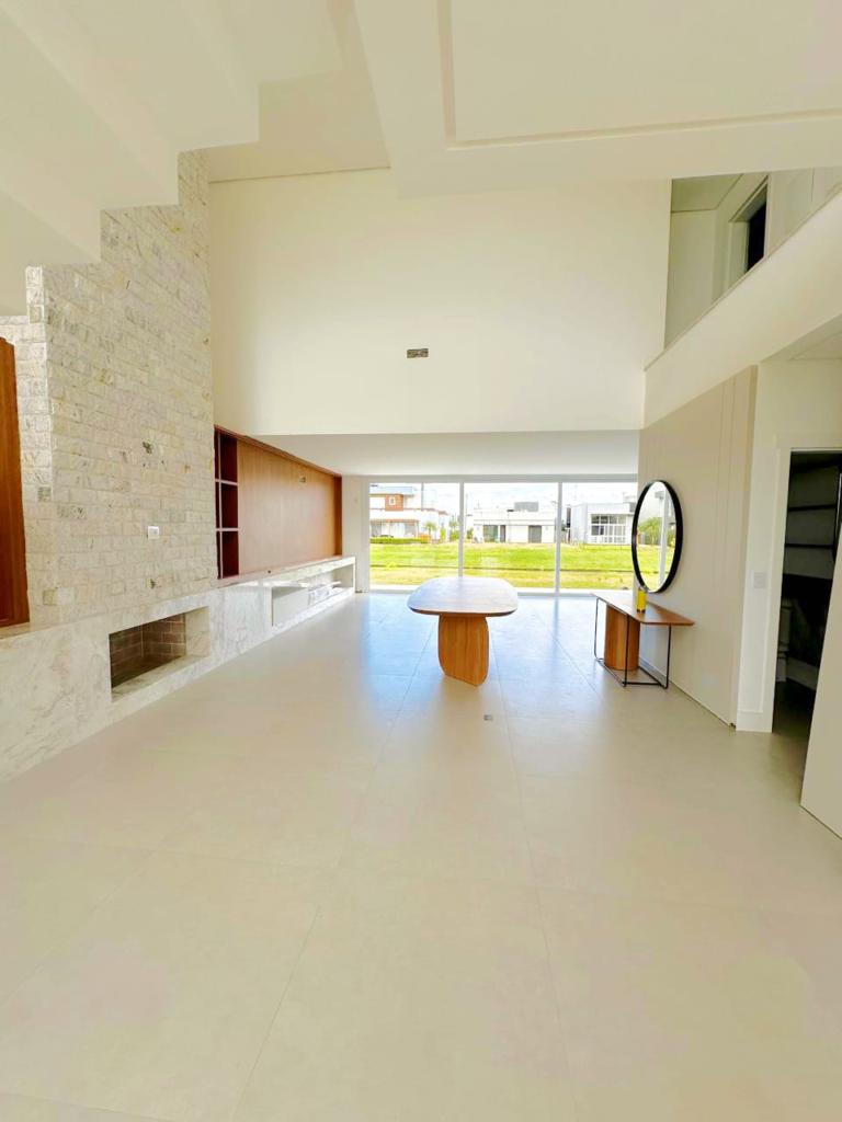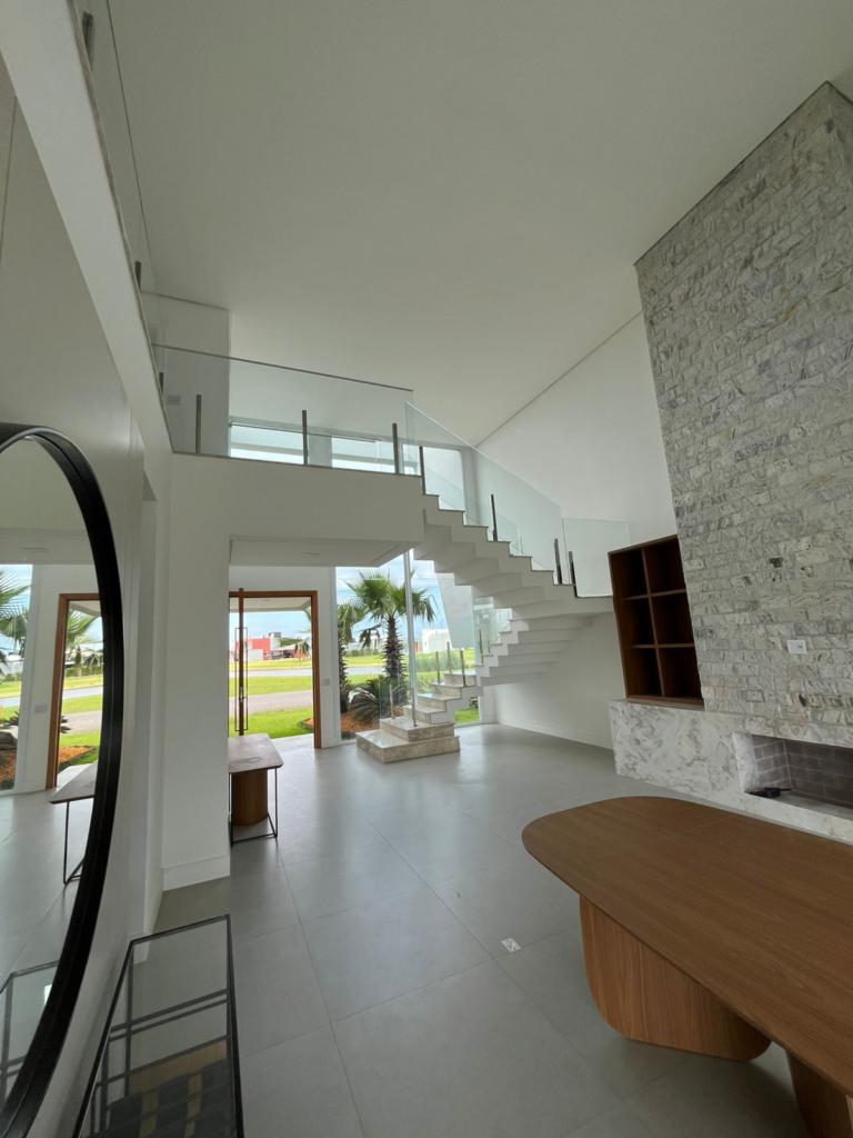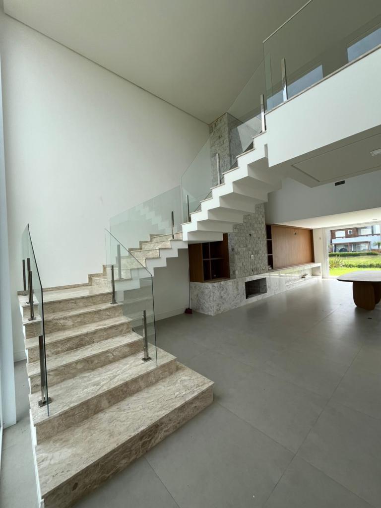 Excelente casa de quatro suítes, ampla sala de estar e jantar, lareira com revestimento, espaço gourmet com churrasqueira e piscina, semi mobiliada.