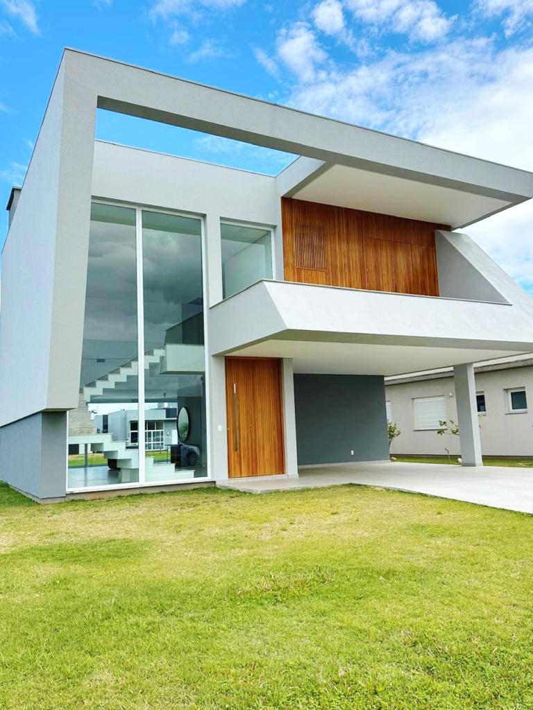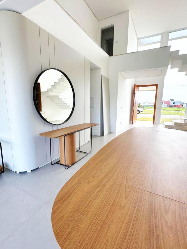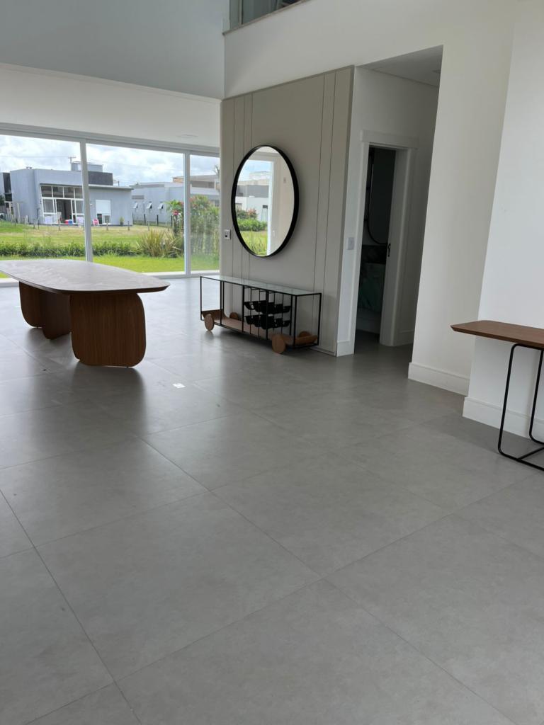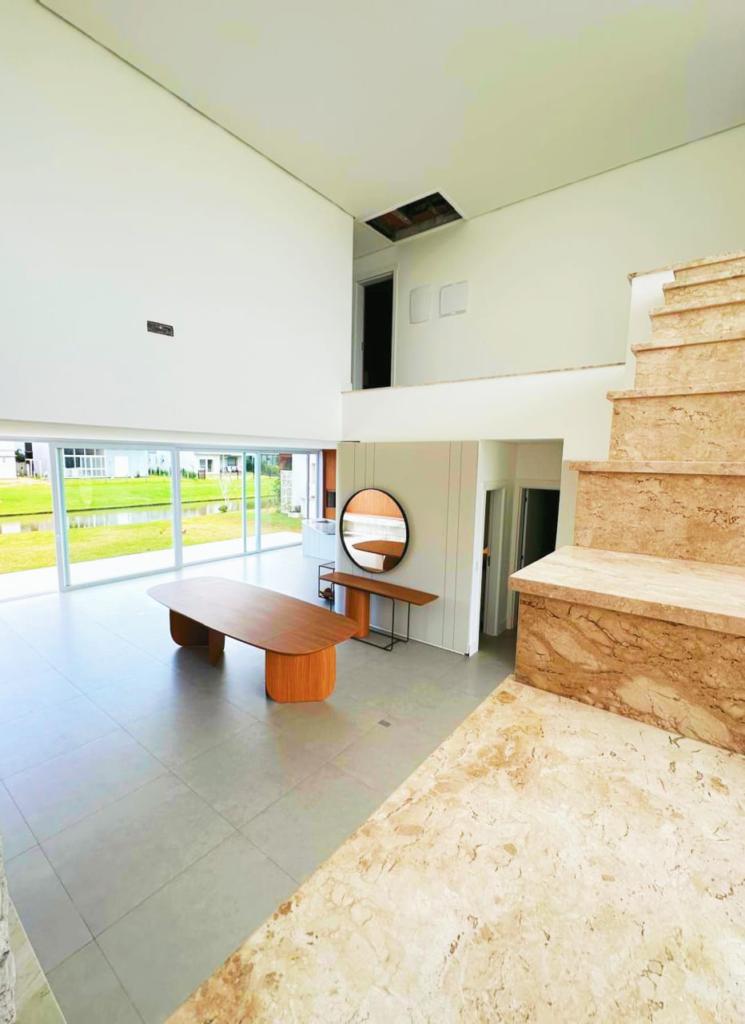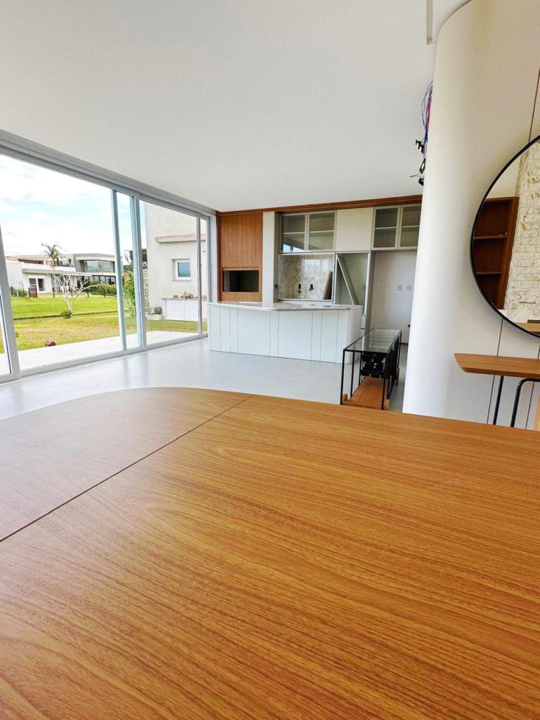 Excelente casa de quatro suítes, ampla sala de estar e jantar, lareira com revestimento, espaço gourmet com churrasqueira e piscina, semi mobiliada.