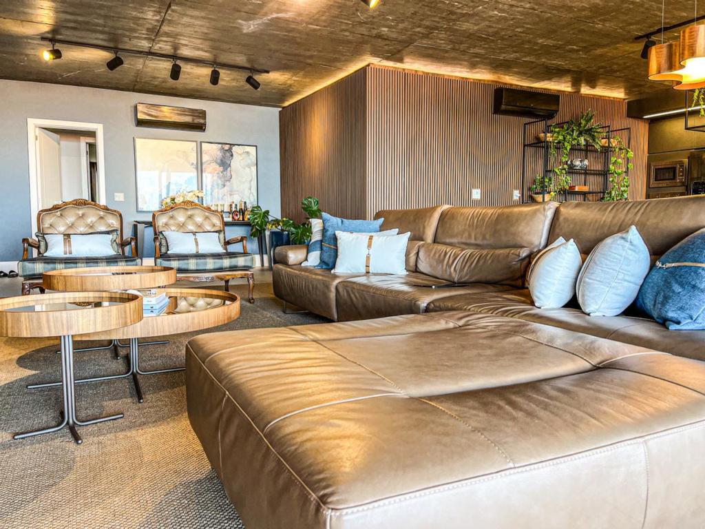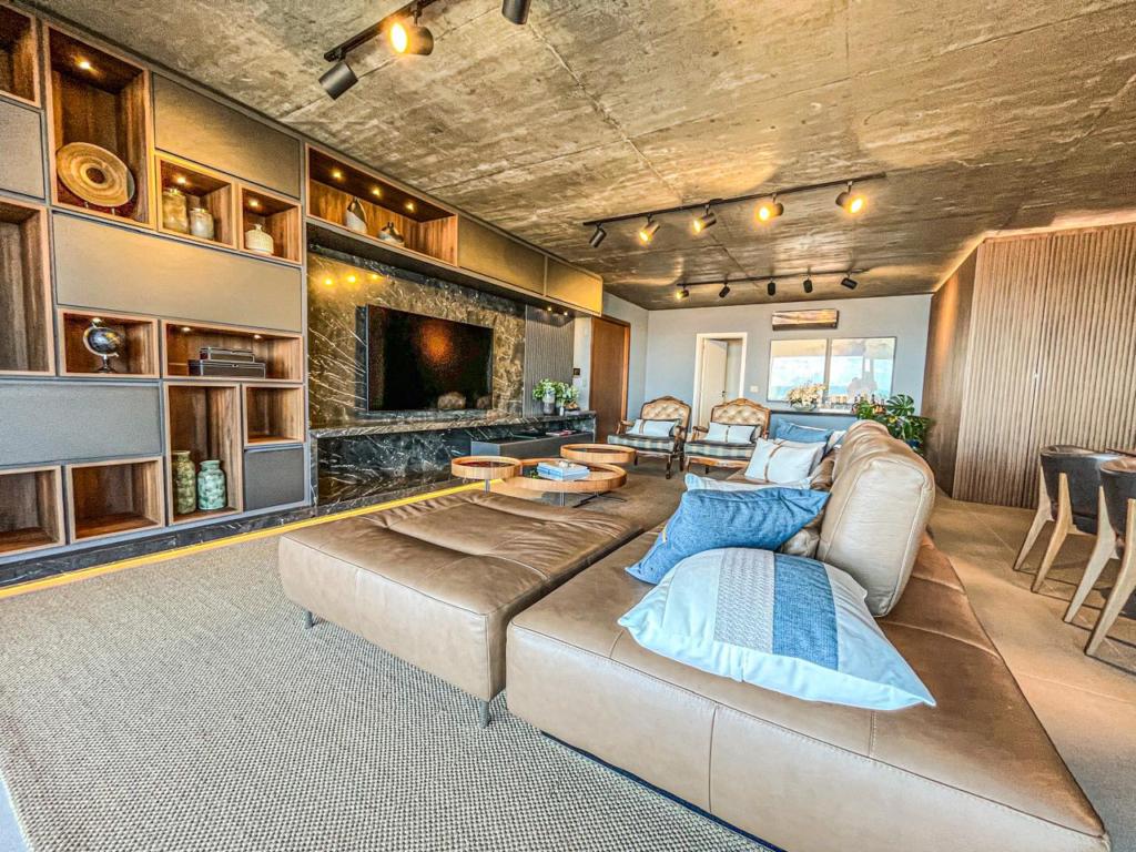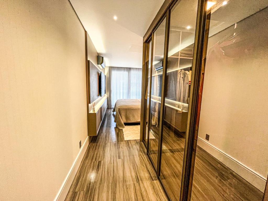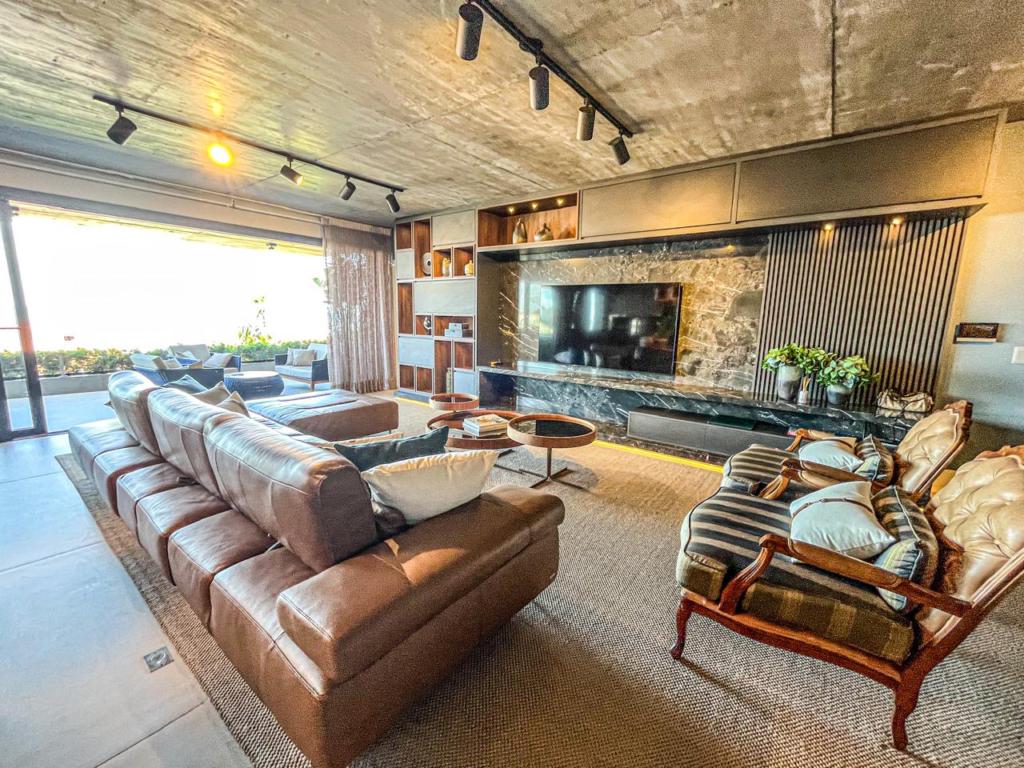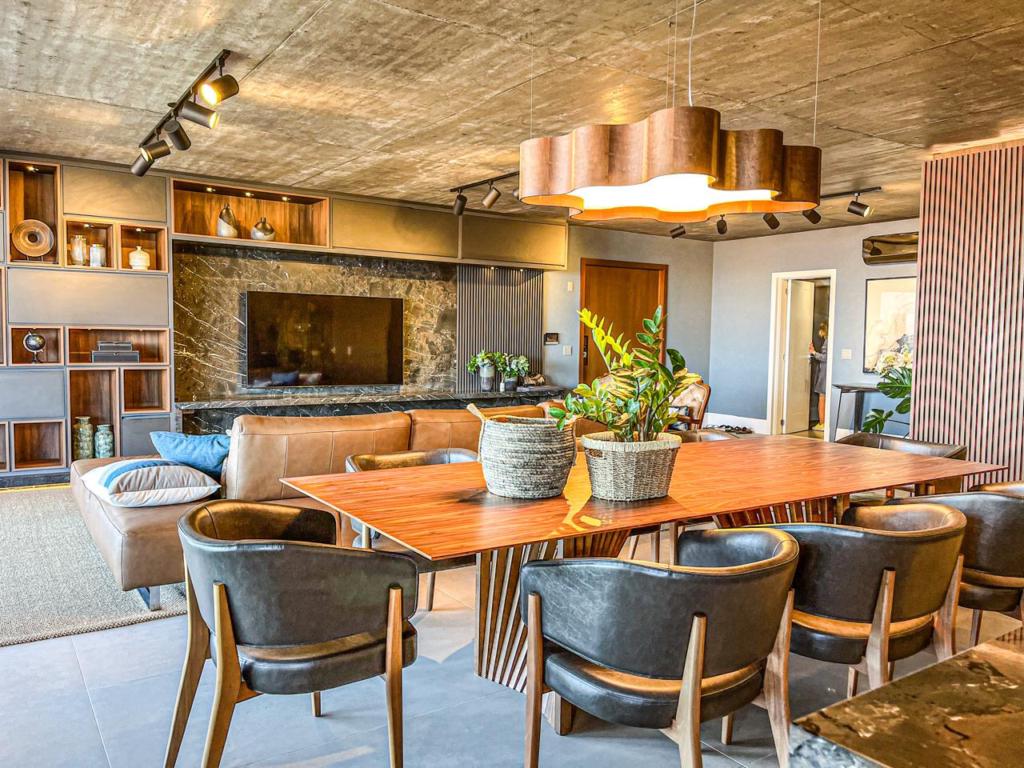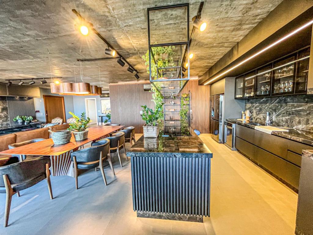 Excelente apartamento mobiliado, equipado e decorado de quatro suítes, amplo living, sacada, churrasqueira, piscina privativa e quatro vagas de garagem.