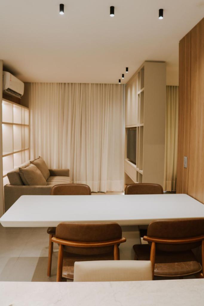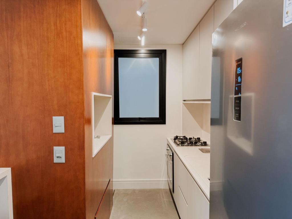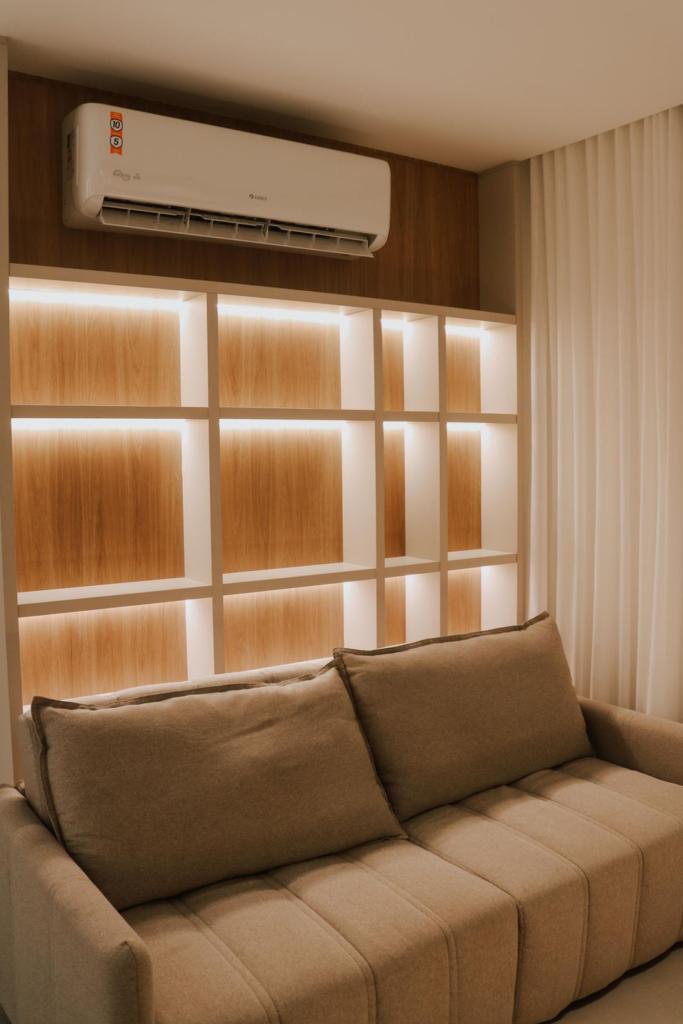 Ótimo apartamento de um dormitório, finamente mobiliado, living e dormitório integrados, cozinha, área de serviço, um banheiro, sacada aberta, salão de festas, pisciana, box de gagarem.