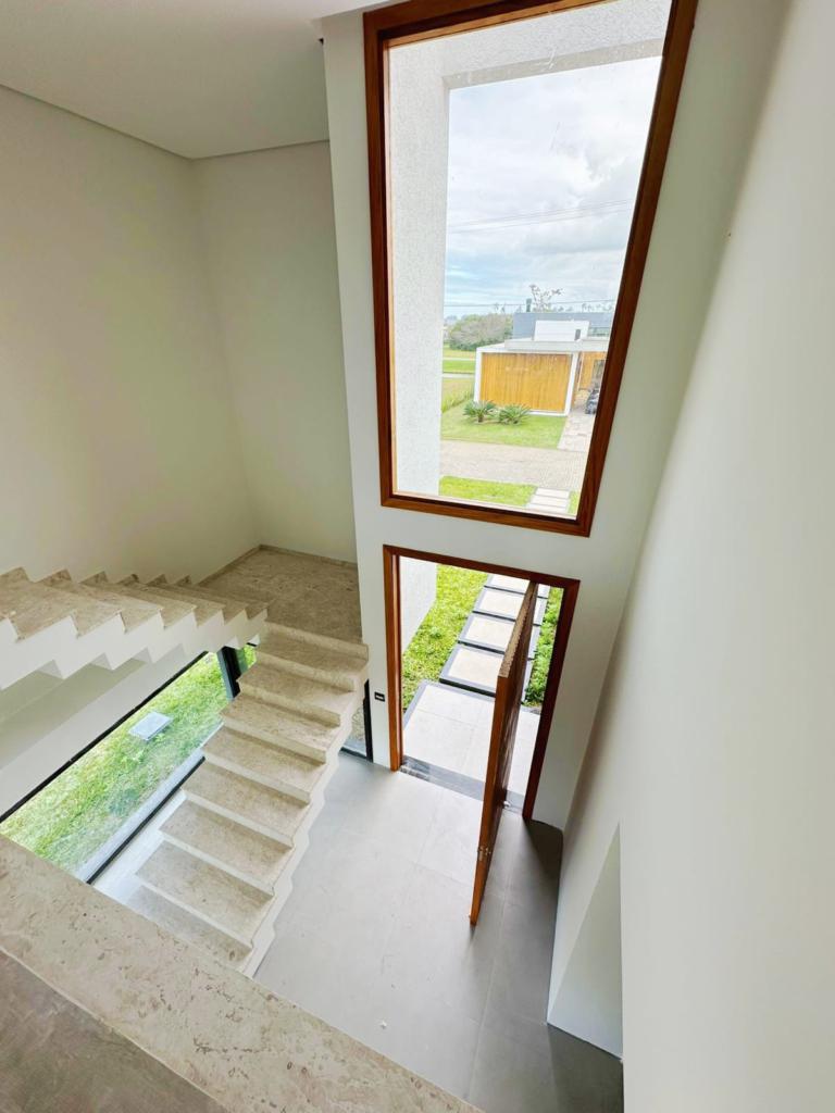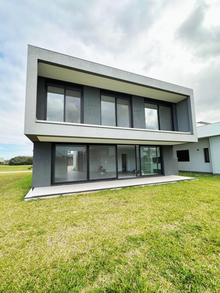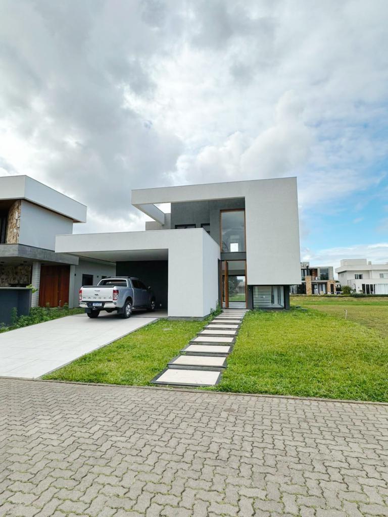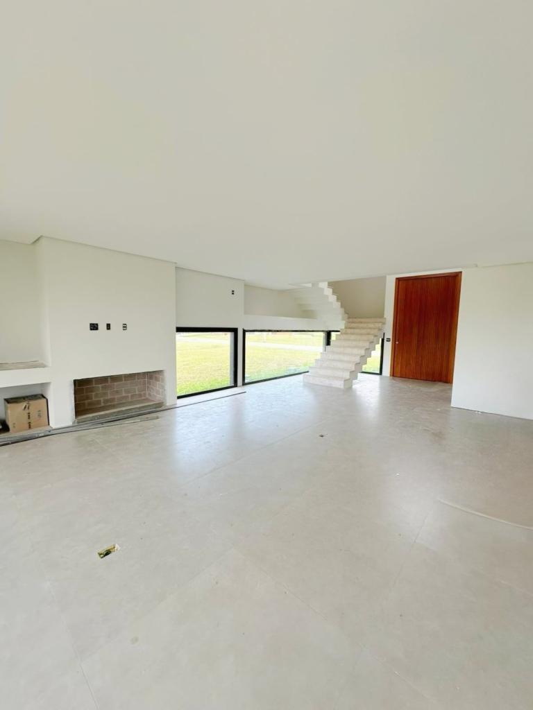 Excelente casa de quatro suítes, ampla sala de estar e jantar, lareira com revestimento, espaço gourmet com churrasqueira e piscina.