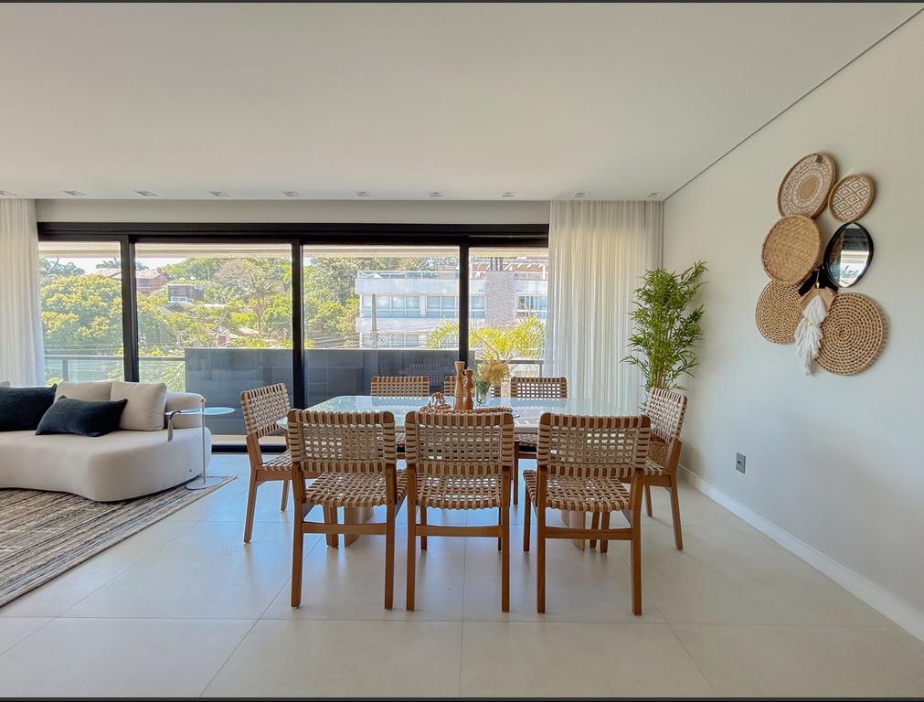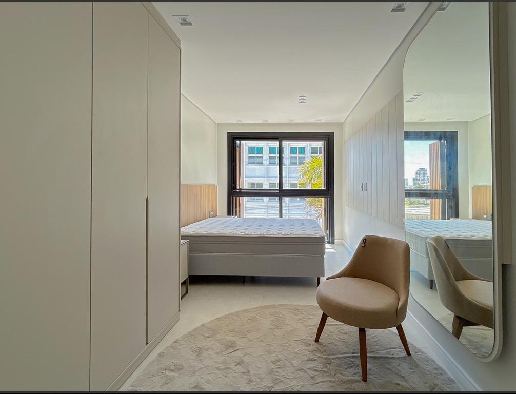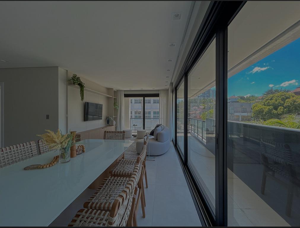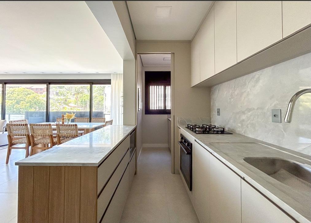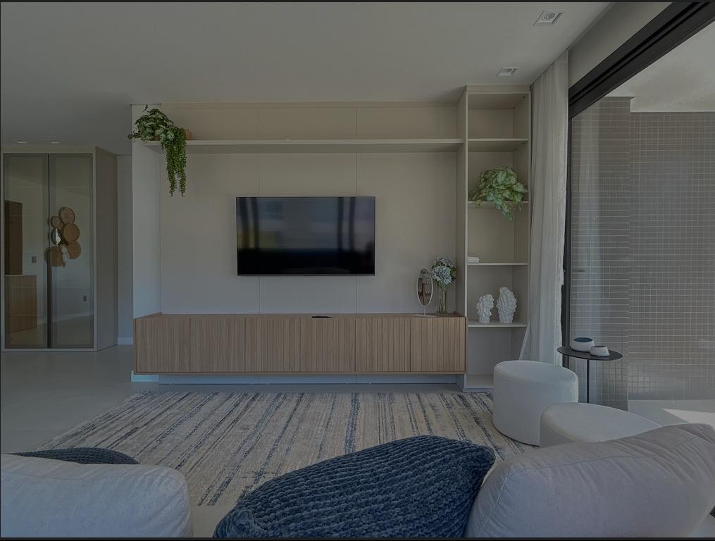 Apartamento de três dormitórios sendo uma suíte, ampla cozinha, sala de estar e jantar integrados, área de serviço, churrasqueira e uma vaga de garagem, apartamento mobiliado.
