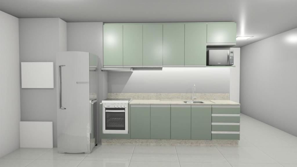 Apartamento sem mobília. Somente os moveis fixos da cozinha e o fogão.