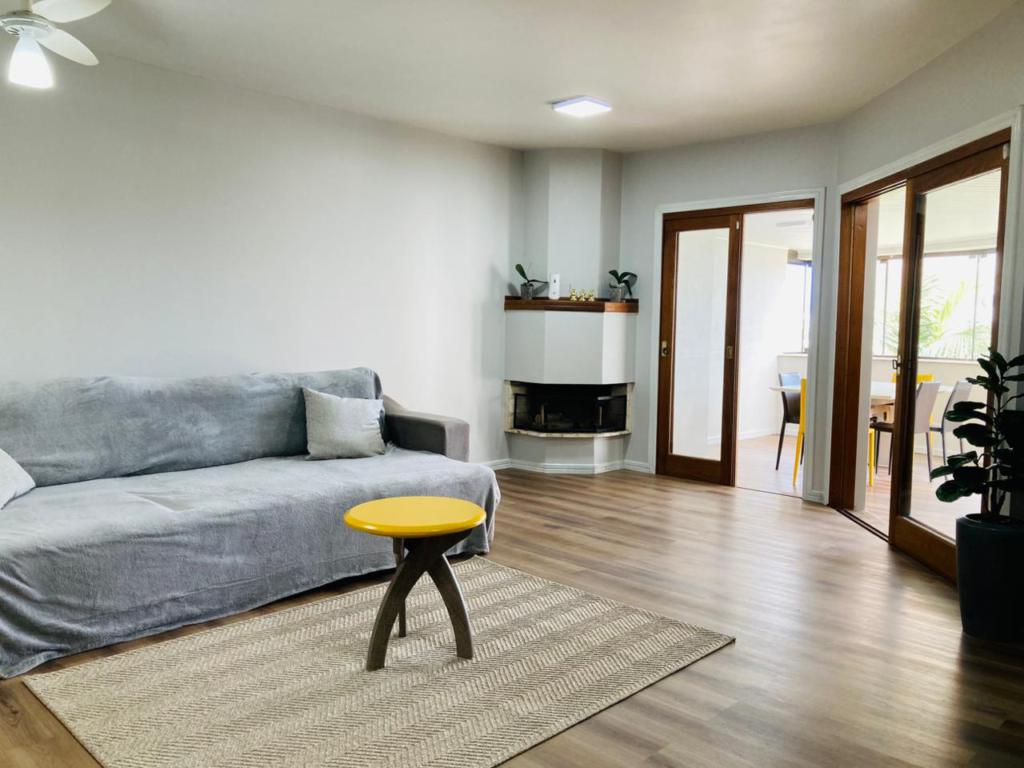 Excelente apartamento de três dormitórios, sendo três suítes, dependência de empregada, cozinha, sala de estar e jantar, lareira, churrasqueira, área de serviço e vaga de garagem.
