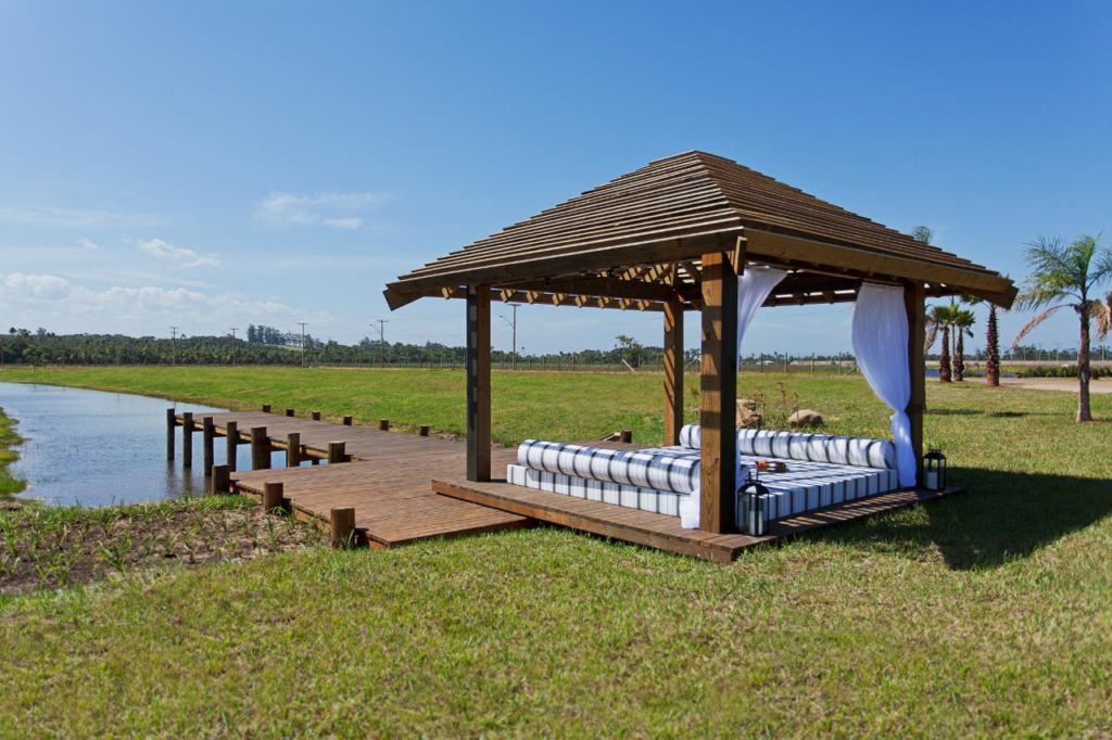 O Condomínio oferece infra estrutura de alto padrão, com quadra poliesportiva, piscinas, salão de festas, restaurante e segurança 24 horas.