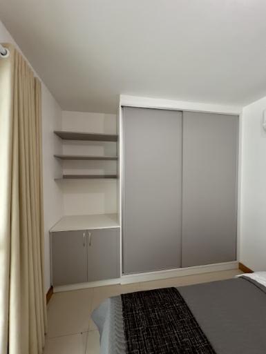 ótimo apartamento de três dormitórios, sendo uma suíte, sala de jantar, sala de estar, cozinha, área de serviço, banheiro, churrasqueira, e vaga dupla de garagem.