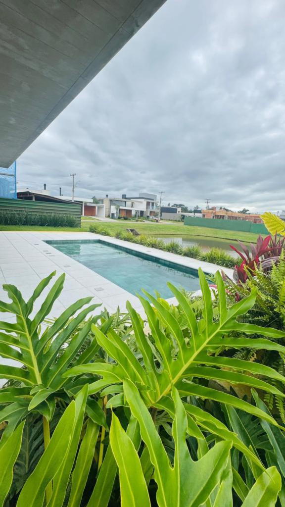 Linda casa térrea com de três suítes, cozinha e sala de estar com pé direiito duplo, Living com lareira e jantar integrados,Piscina com piso atérmico e esperas para aquecimento solar ,Jardim de inverno, com linda árvore de Oliveira, Esquadrias de pvc com persianas motorizadas, Terreno com fundos para o lago.