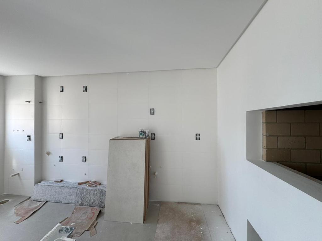 Possue sala de estar e jantar integradas com churrasqueira, e vaga de garagem.