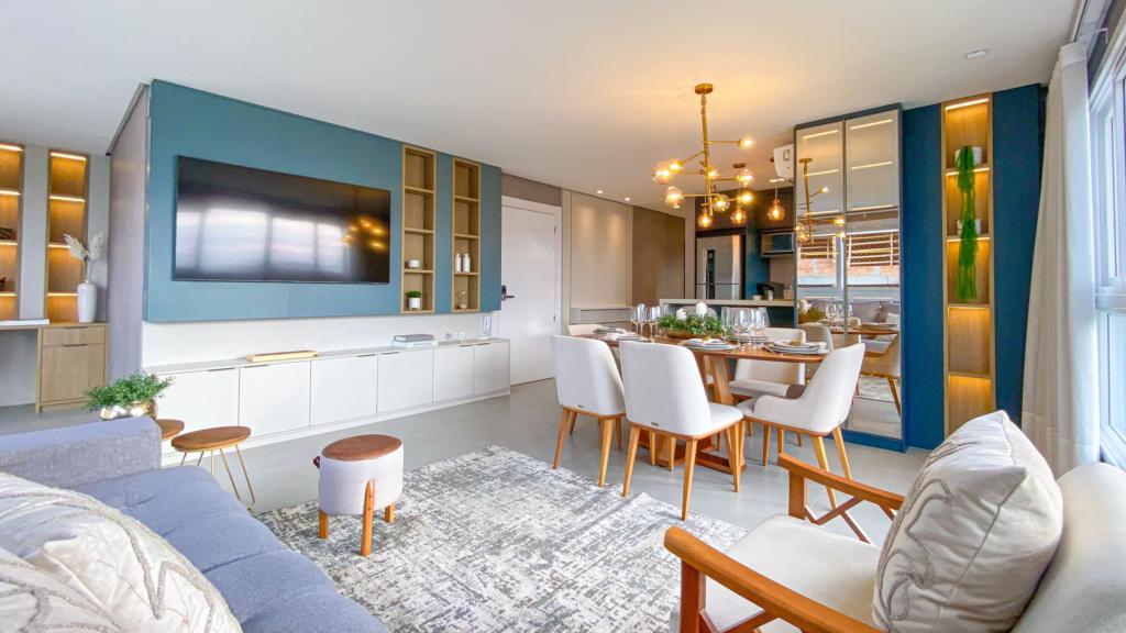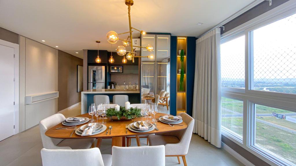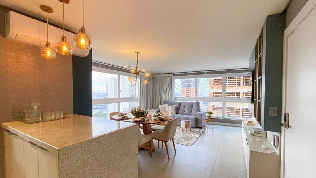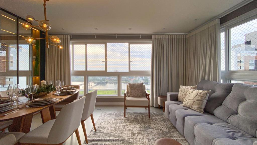 Belíssimo apartamento de três dormitórios sendo uma suíte, mobiliado e decorado.