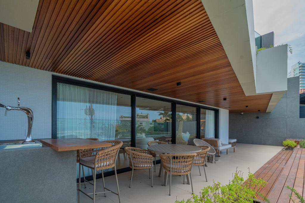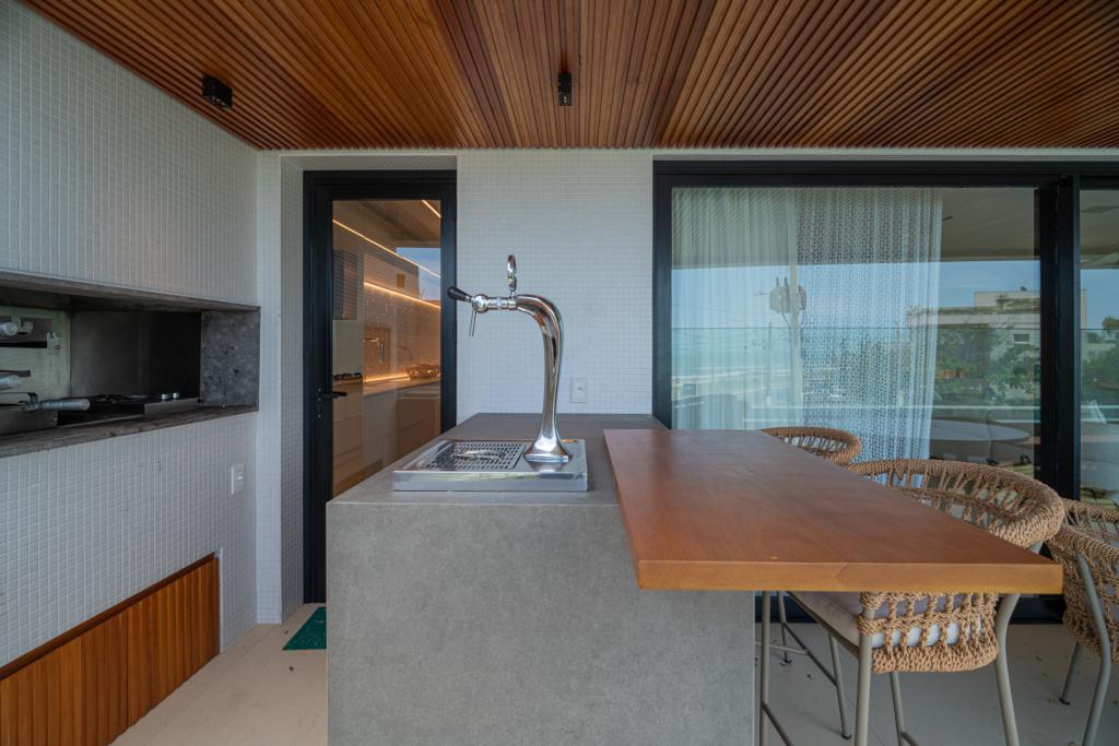 Destaque para o box americano para até 4 veículos, garagem Sem Parar, chopeira com torre Naja e torneira belga, além de jardim de inverno e área externa privativa.