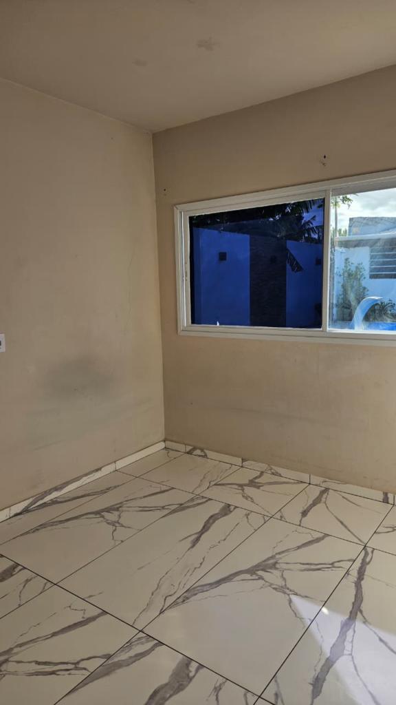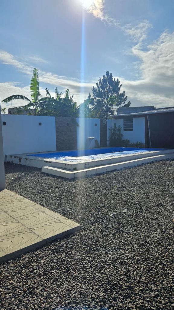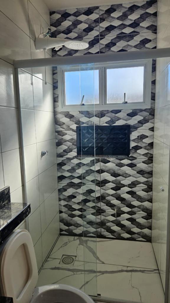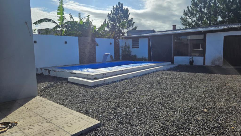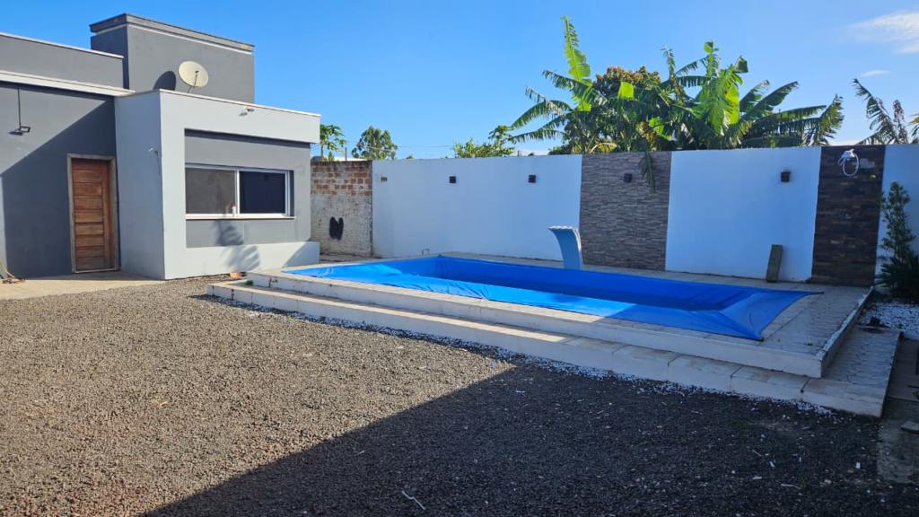 Quiosque, churrasqueira e piscina. Terreno 12x33.