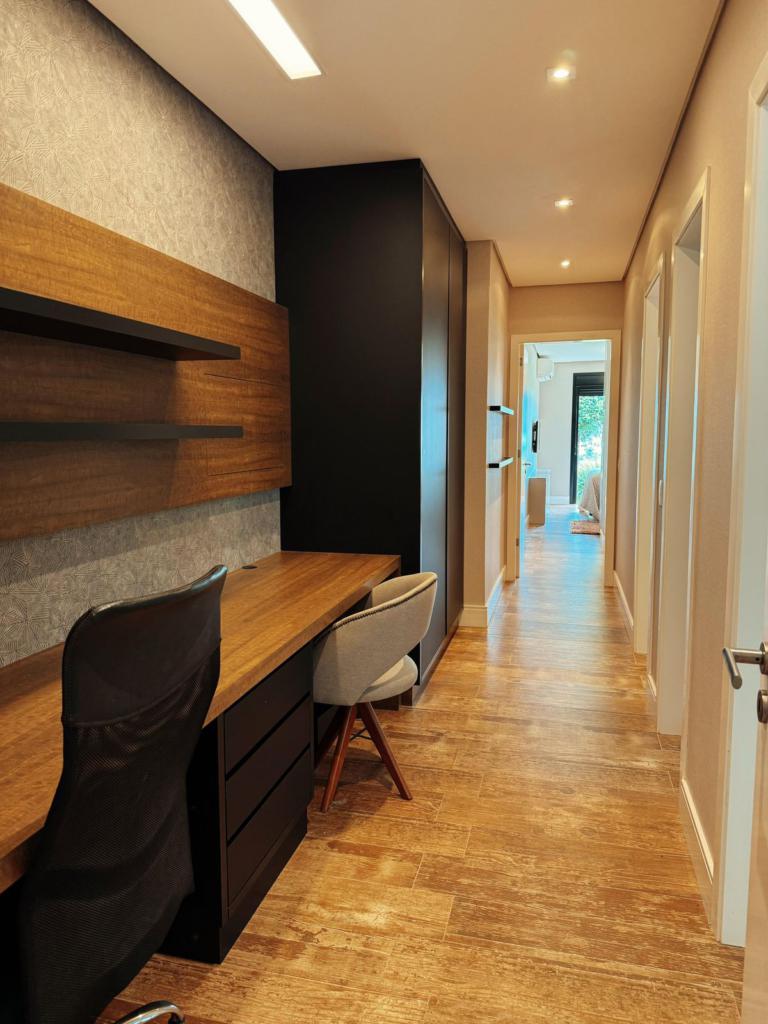 Linda casa de três dormitórios, sendo uma suíte master com closet e banheira, ampla sala de estar/jantar, lareira, espaço gourmet com churrasqueira e piscina.