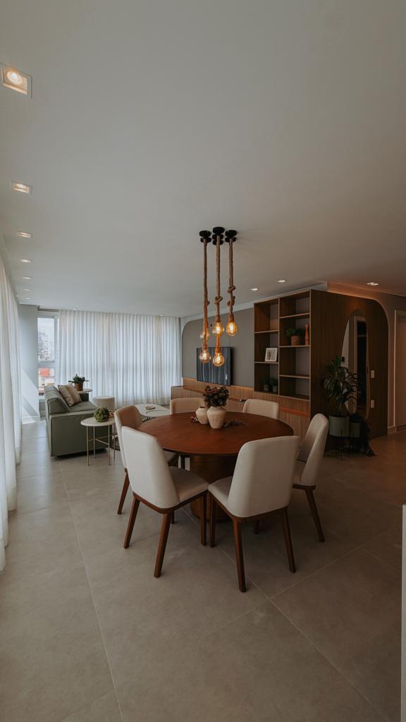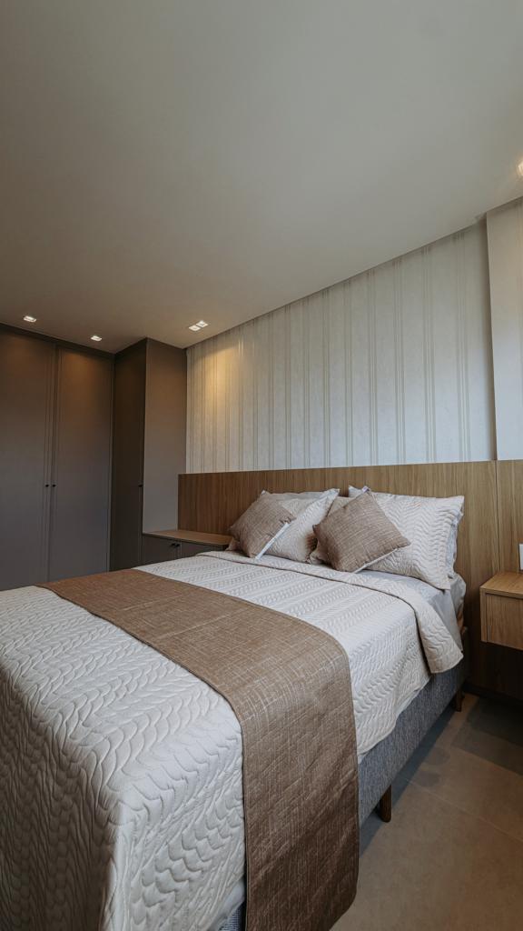 Belíssimo apartamento de três dormitórios, sendo uma suíte, sala de estar e jantar integrado, área de serviço e uma vaga de garagem dupla.