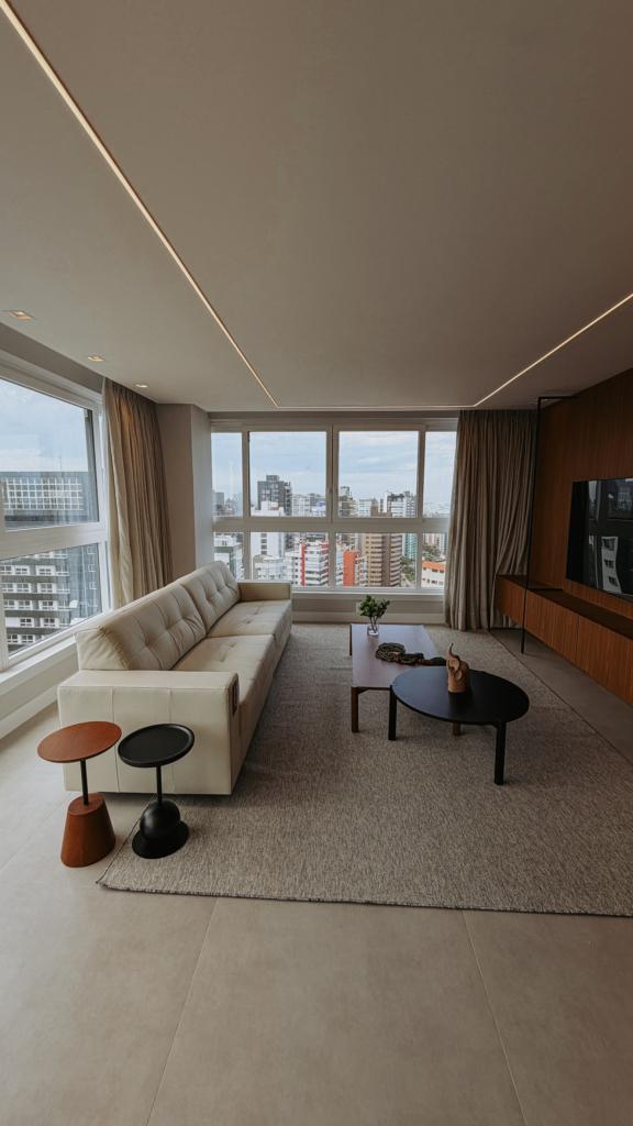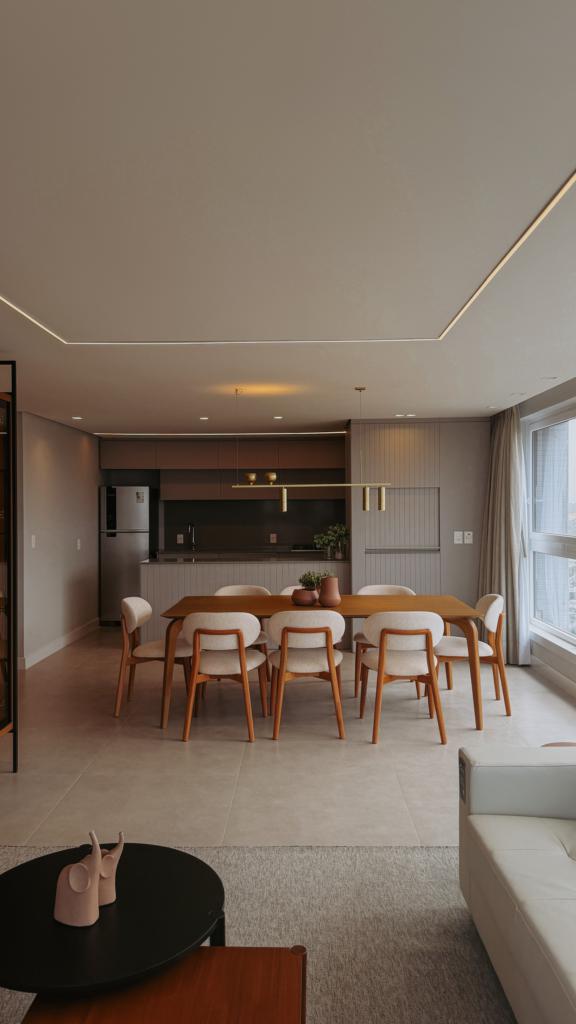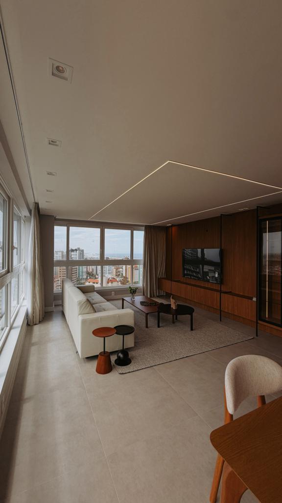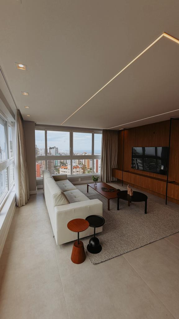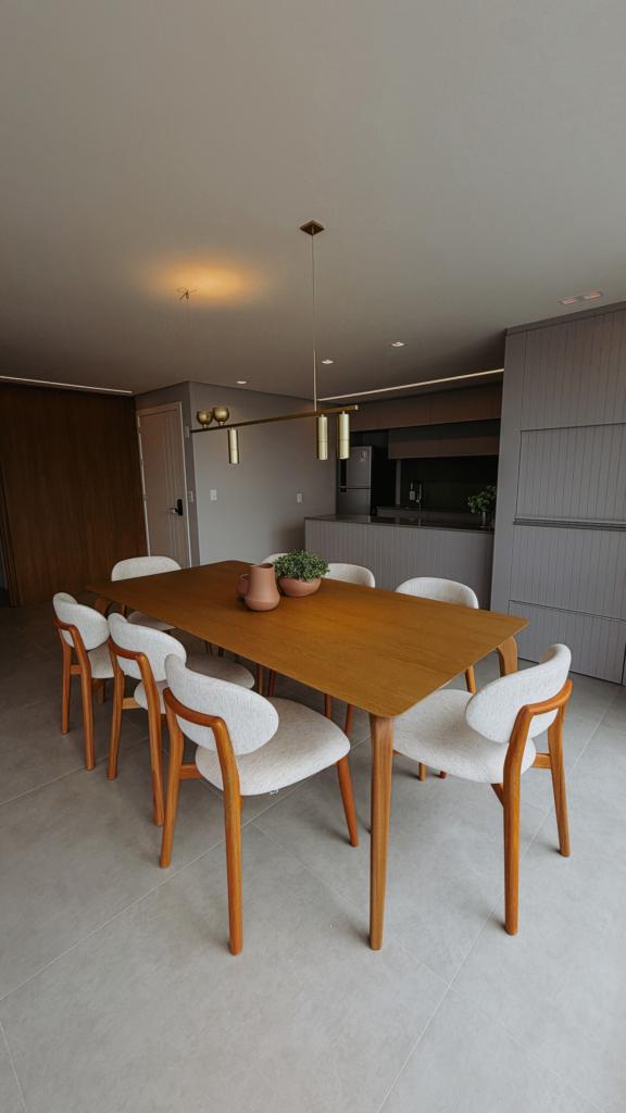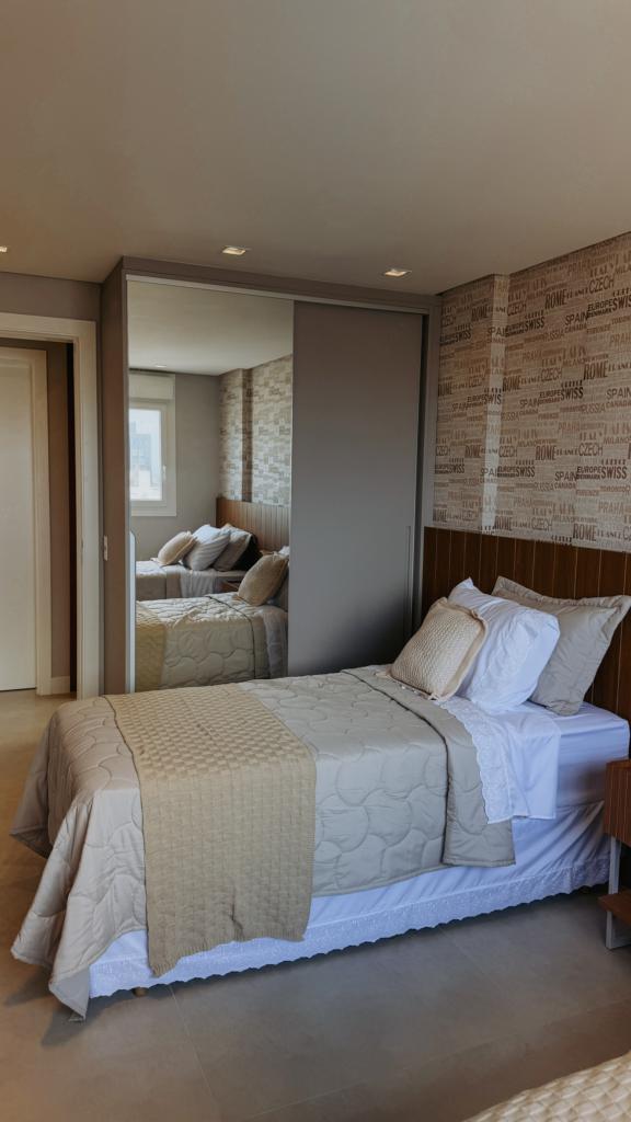 Belíssimo apartamento de três dormitórios, sendo uma suíte, sala de estar e jantar integrado, área de serviço e uma vaga de garagem dupla.