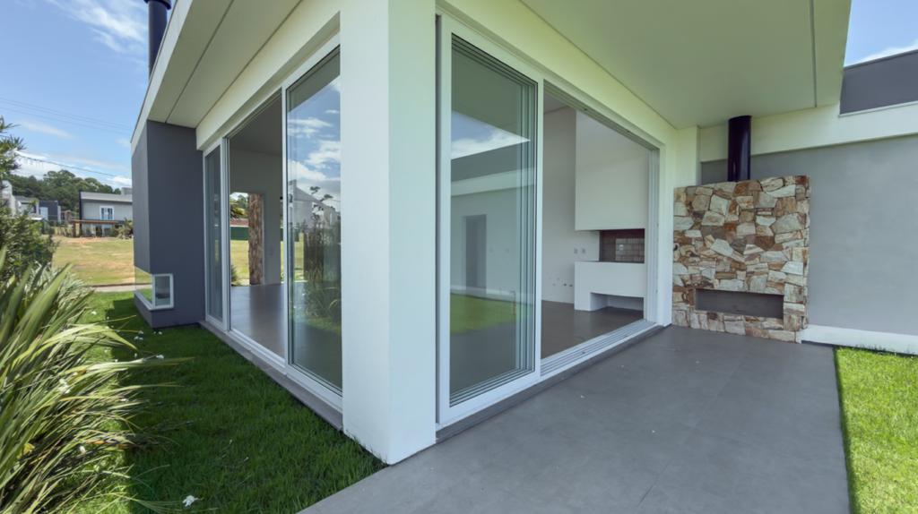 Ótima casa com três suítes (sendo uma suíte e duas suítes americana), cozinha, sala de estar e living integrados, lareira á lenha, pé direito alto, com sacada, depósito e abrigo para quatro carros.