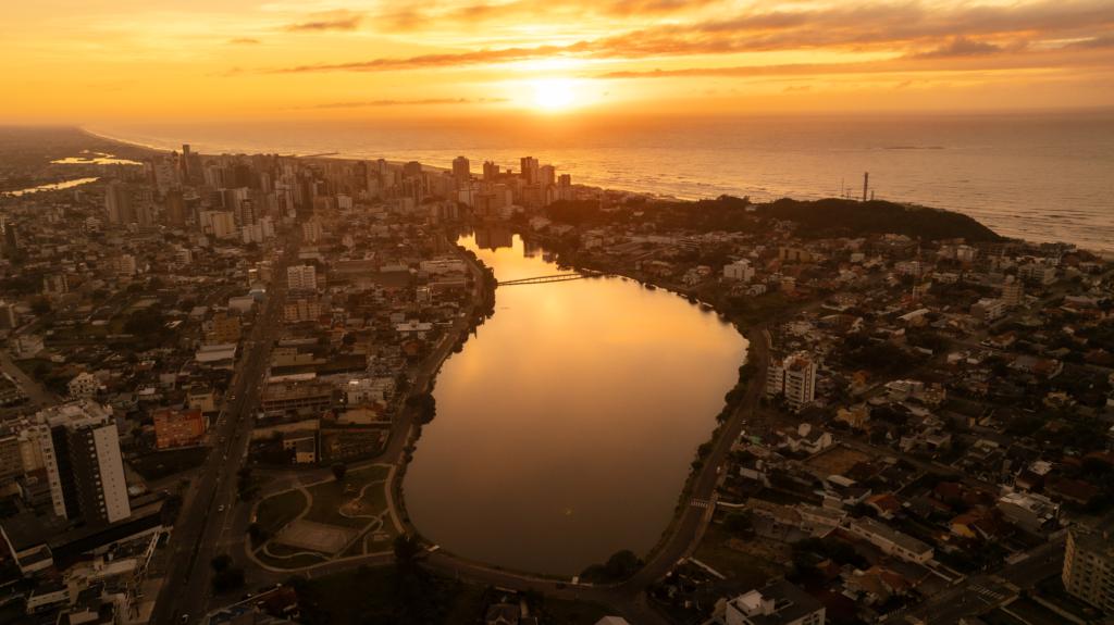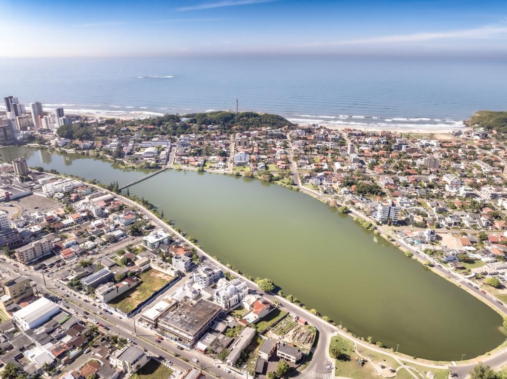 O Lagos fica em frente a lagoa do Violão e no centro de Torres.