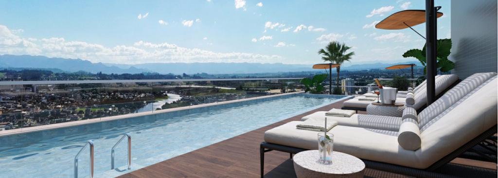 Além do amplo espaço e ótimo acabamento, possui uma infraestrutura completa no Rooftop e uma piscina com borda infinita.