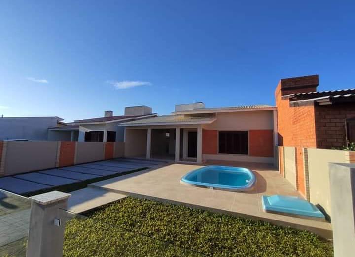 Belíssima casa de três dormitórios, sendo uma suíte, banheiro social, lavabo, sala/cozinha.