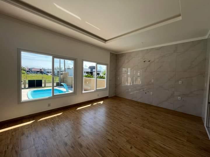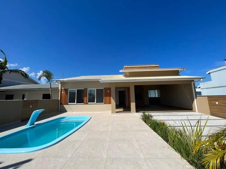 Belíssima casa de três dormitórios, sendo duas suítes, banheiro social, sala/cozinha.