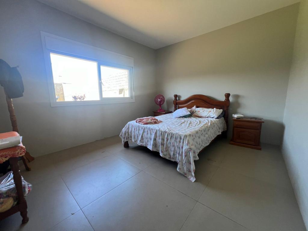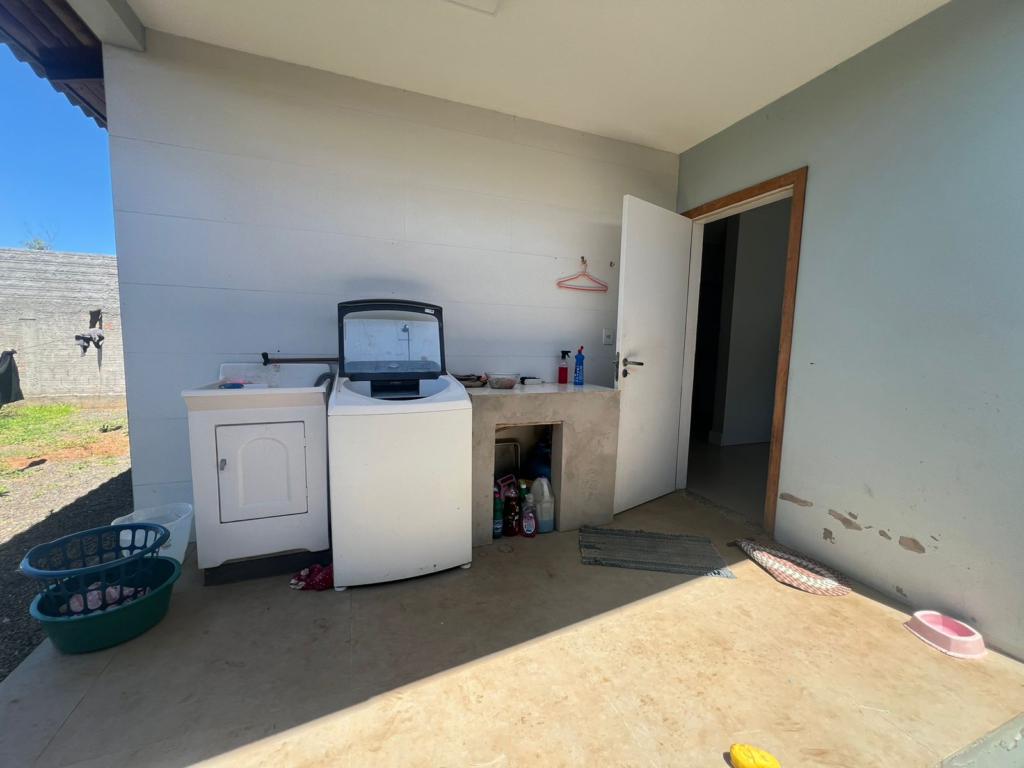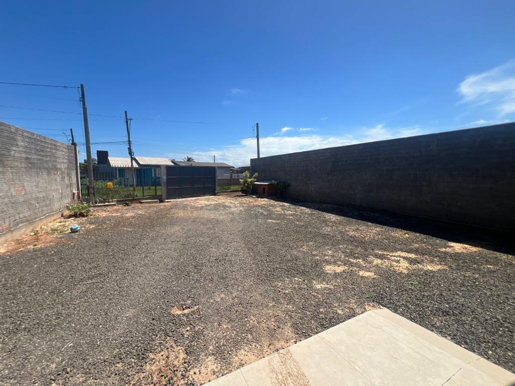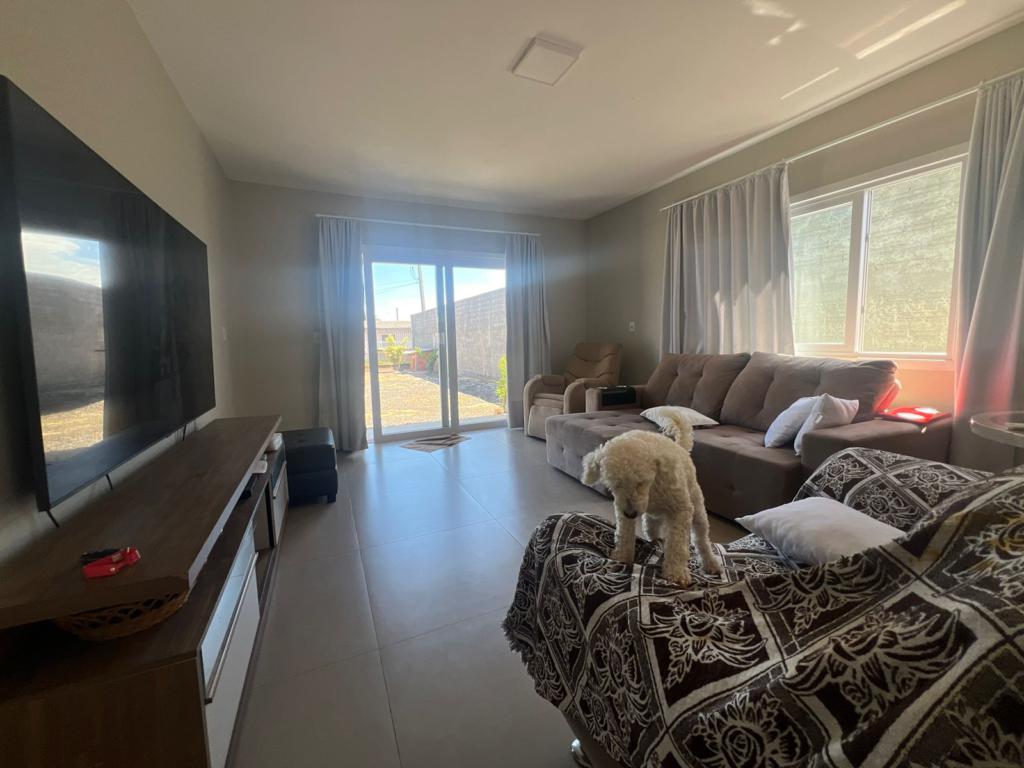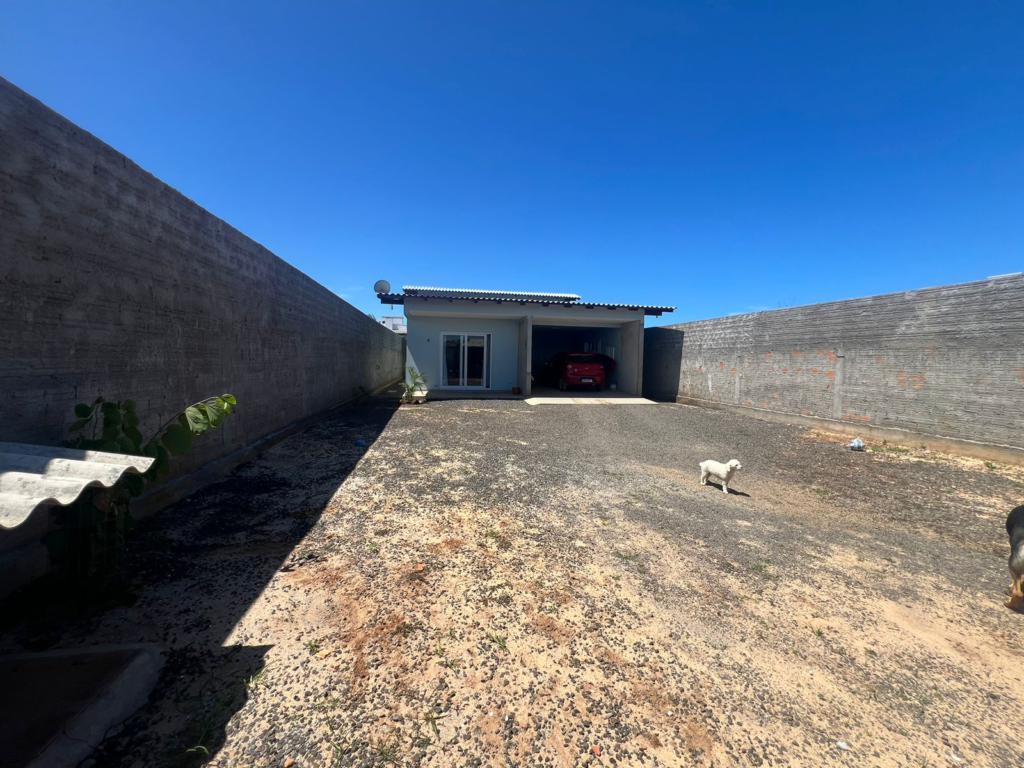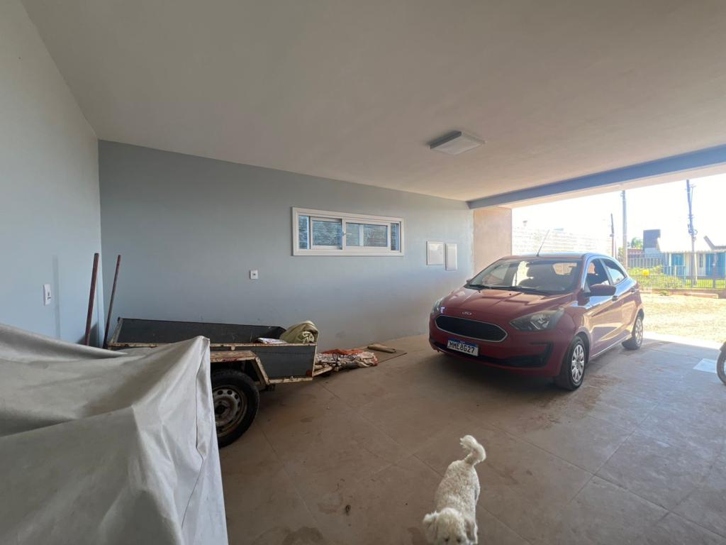 Casa de dois dormitórios, ampla sala de estar/jantar integradas, cozinha, área de serviço, banheiro social, e garagem coberta.