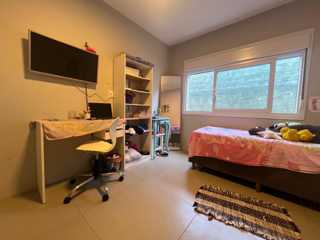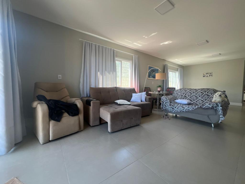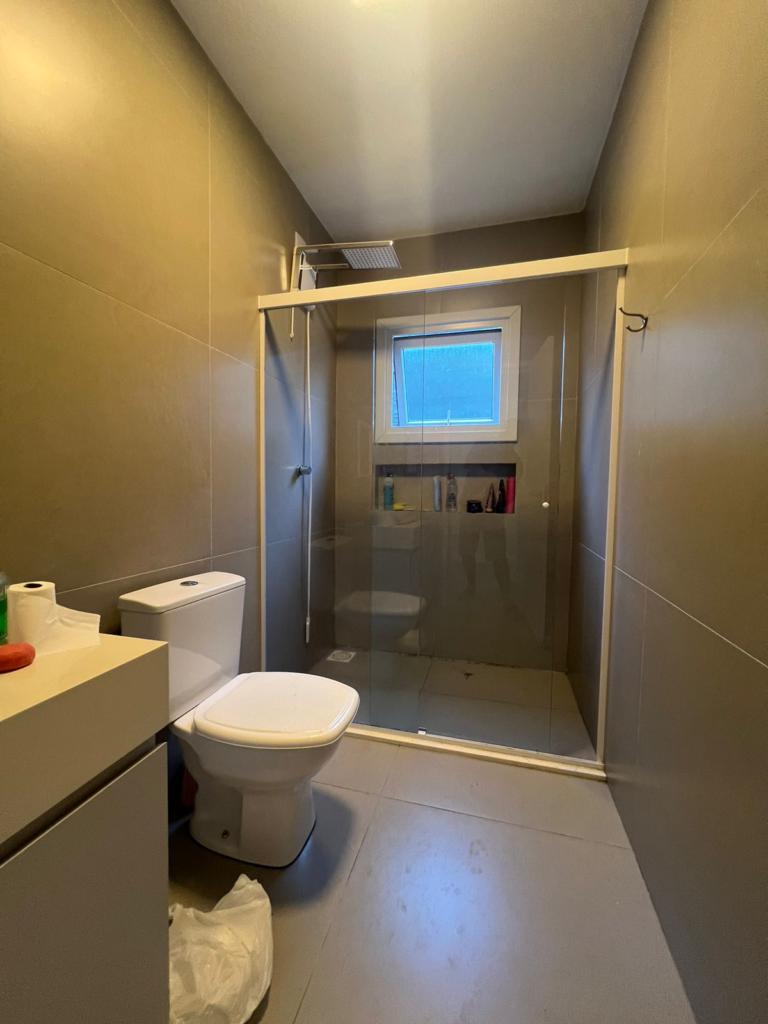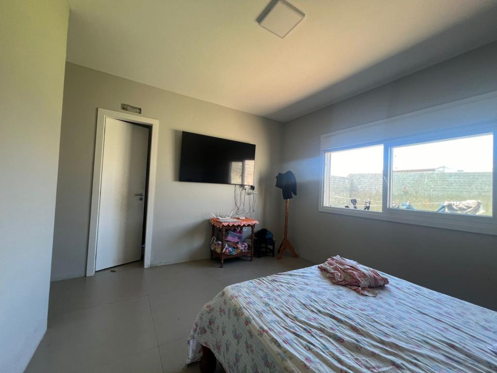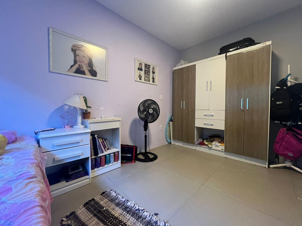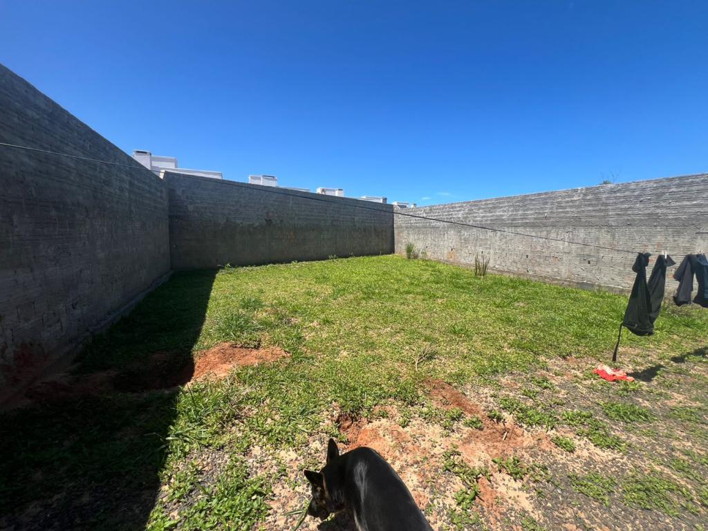 Casa de dois dormitórios, ampla sala de estar/jantar integradas, cozinha, área de serviço, banheiro social, e garagem coberta.