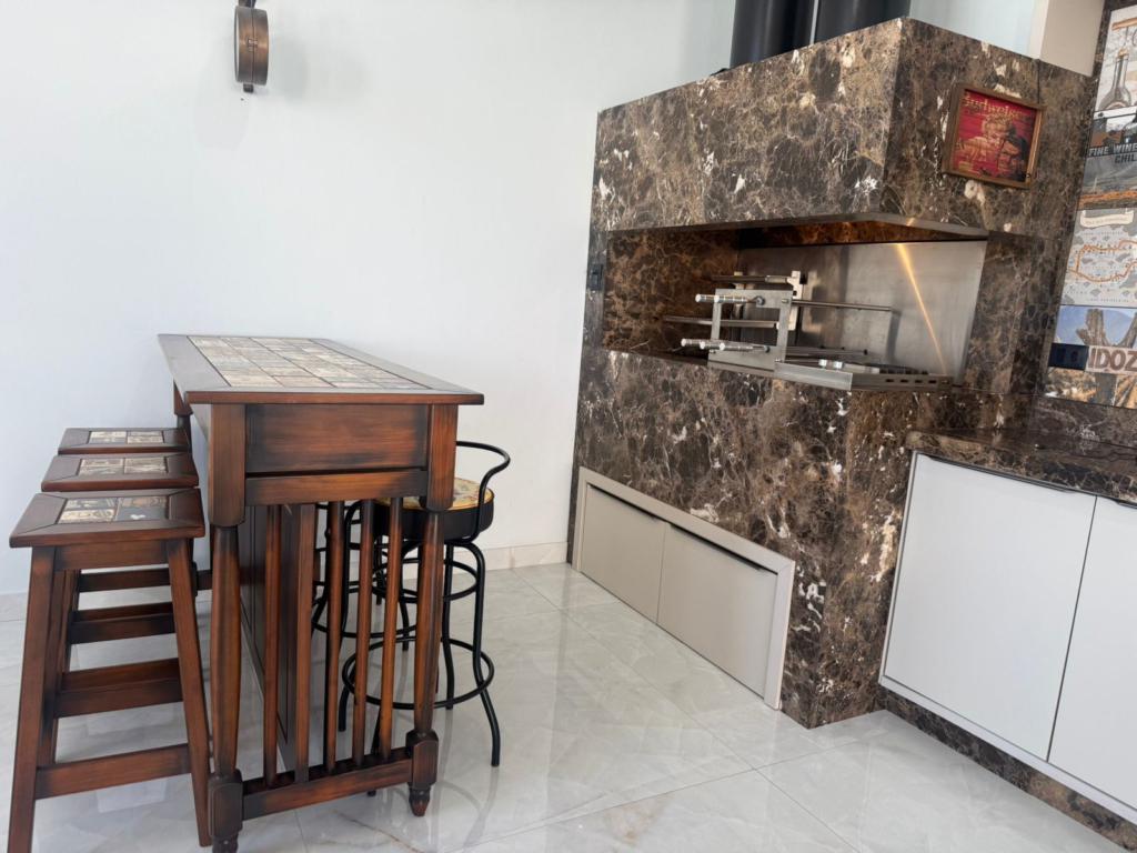 Churrasqueira, garagem, piscina.