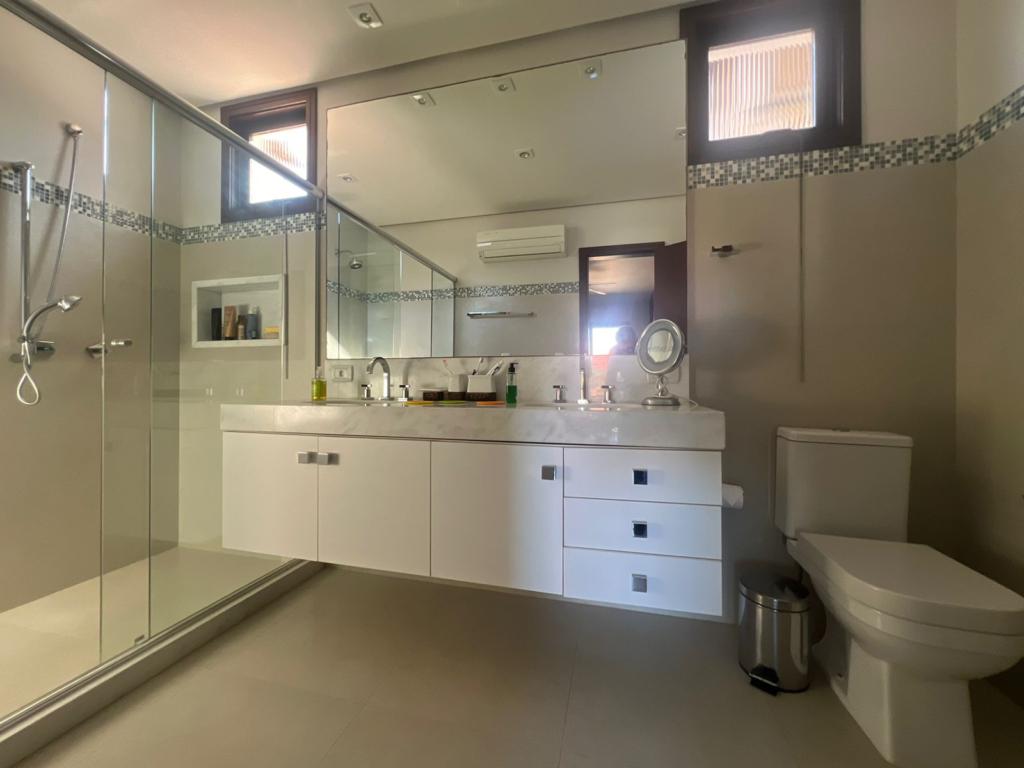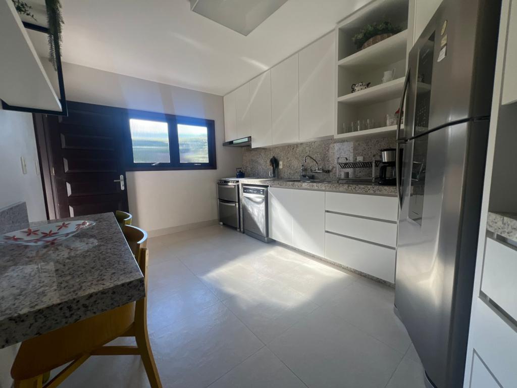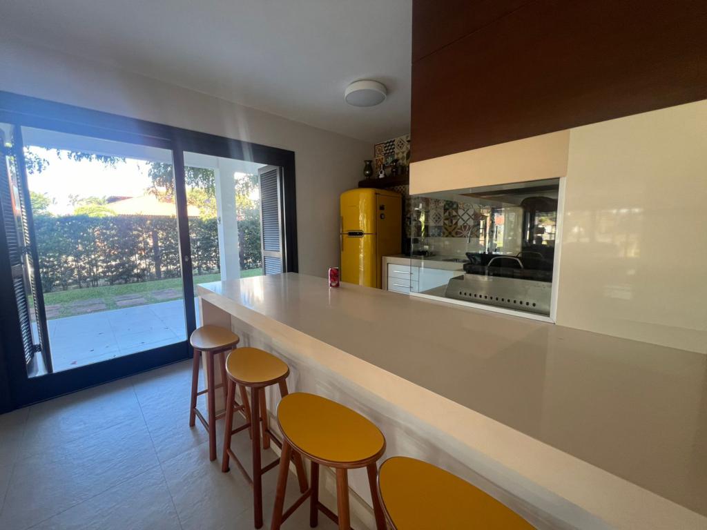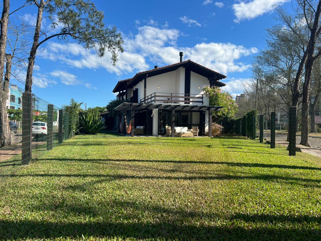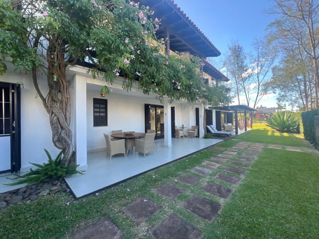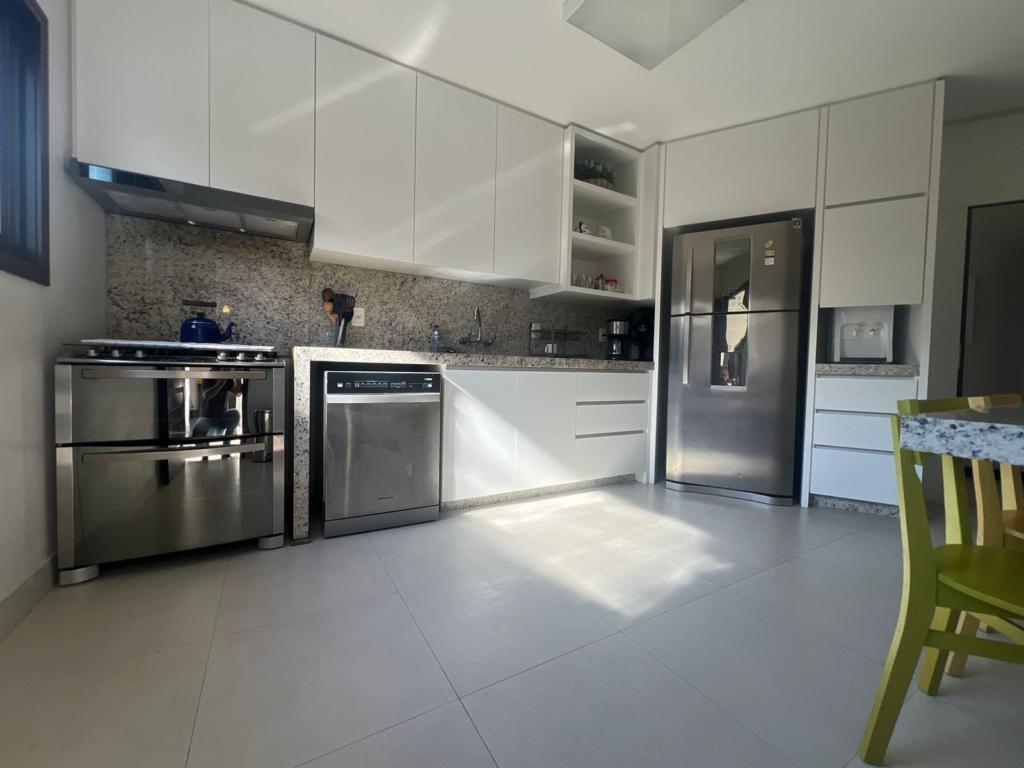 No térreo temos uma suíte, um dormitório, amplo living com ambientes integrados (sala de estar, jantar, cozinha, área social), banheiros, espaço gourmet com churrasqueira, área de serviço, áreas de lazer, garagem, dependência para empregada, lavabo e um amplo pátio gramado para viver e curtir os melhores momentos junto aos familiares e amigos.
