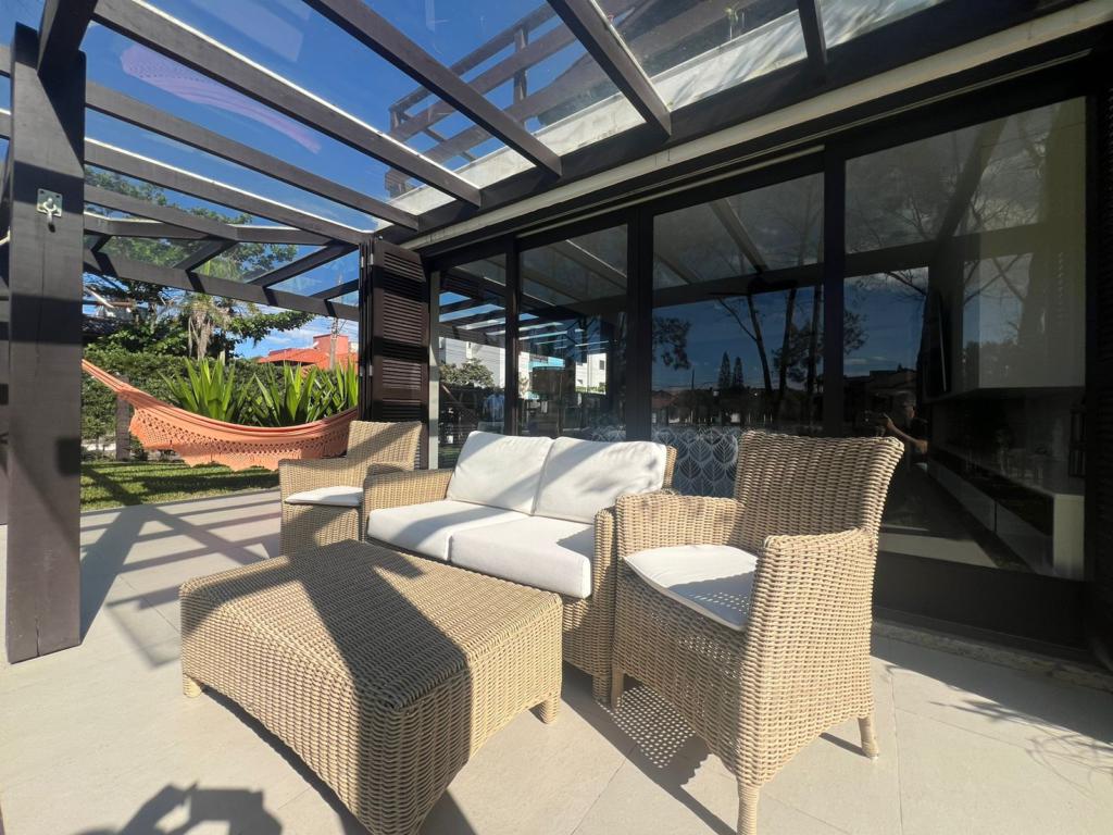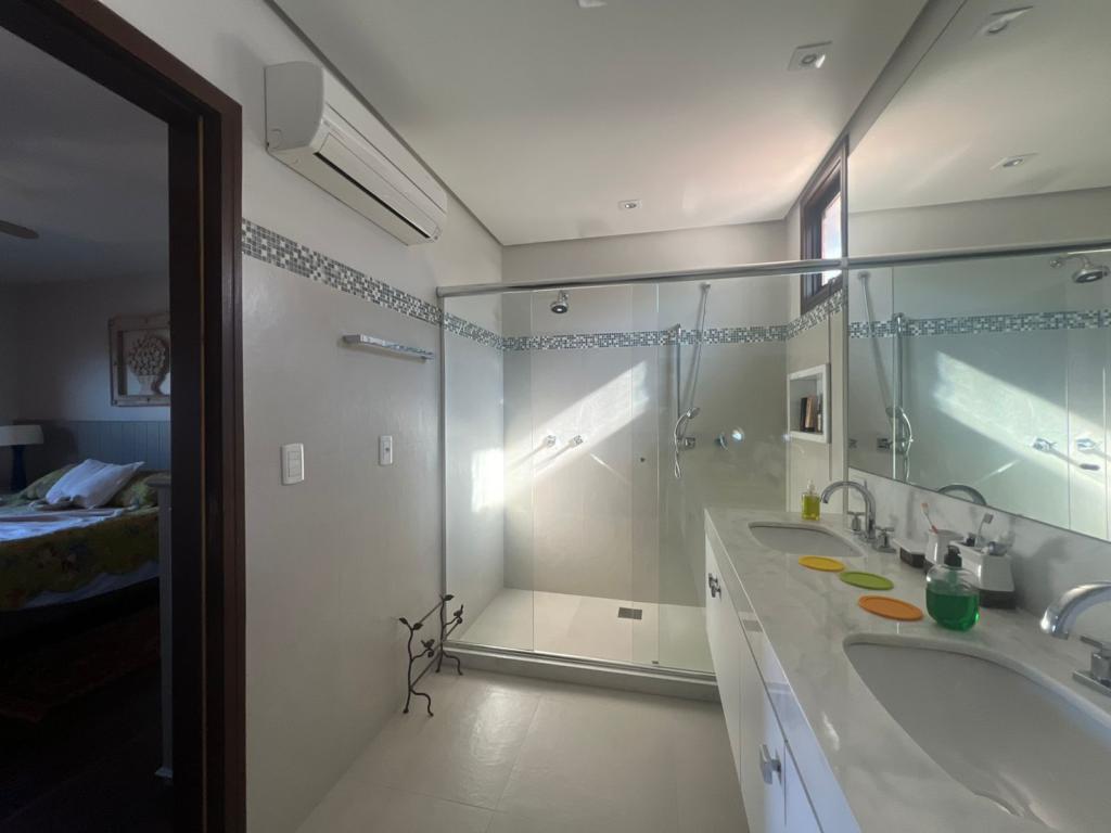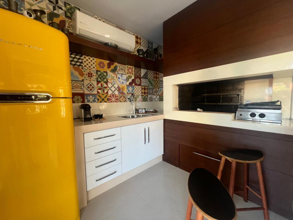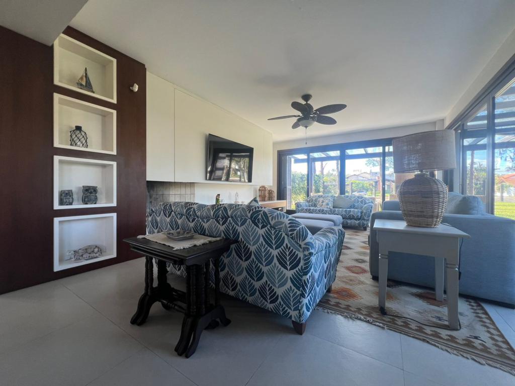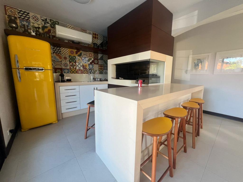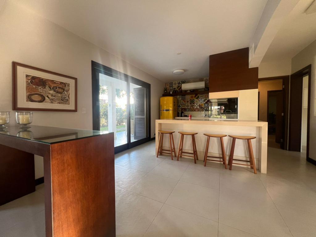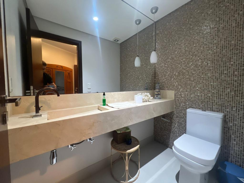 No térreo temos uma suíte, um dormitório, amplo living com ambientes integrados (sala de estar, jantar, cozinha, área social), banheiros, espaço gourmet com churrasqueira, área de serviço, áreas de lazer, garagem, dependência para empregada, lavabo e um amplo pátio gramado para viver e curtir os melhores momentos junto aos familiares e amigos.