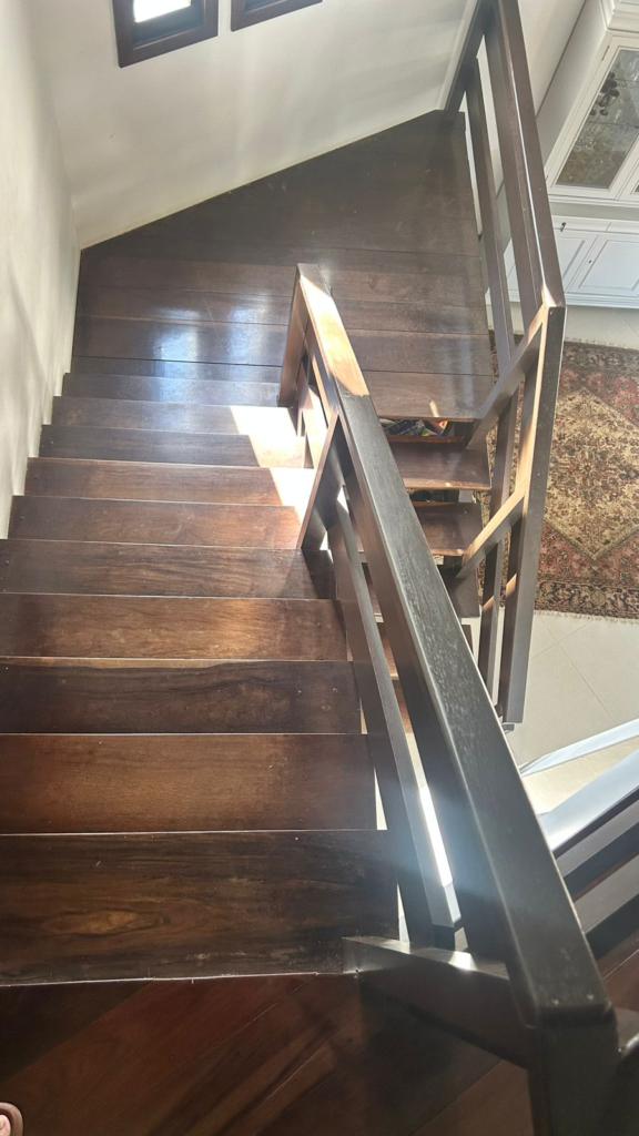Na parte superior da casa temos uma suíte, dois dormitórios, sacada, terraço e uma área de convívio social com banheiro.